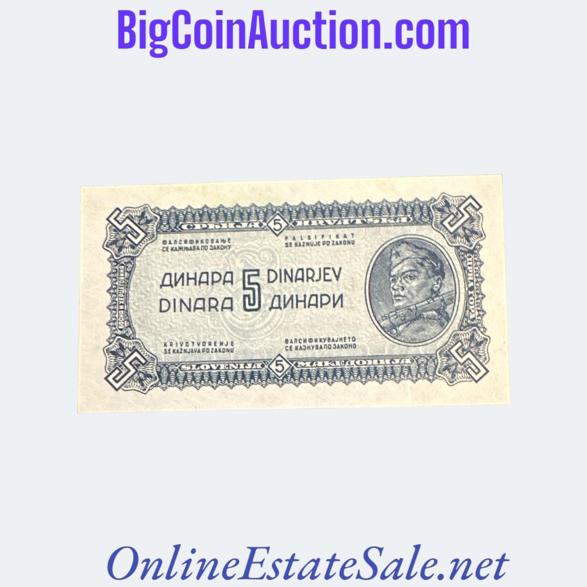 1944 YUGOSLAVIA 5 DINARA - GEM
