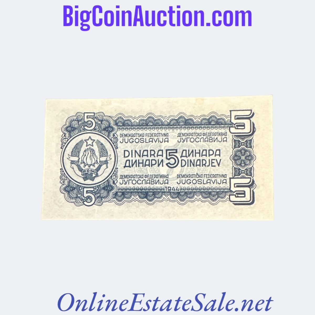 1944 YUGOSLAVIA 5 DINARA