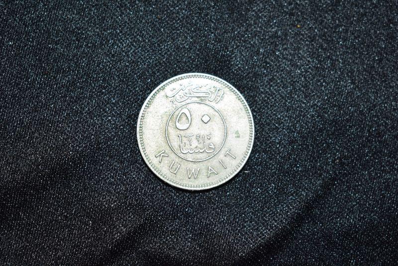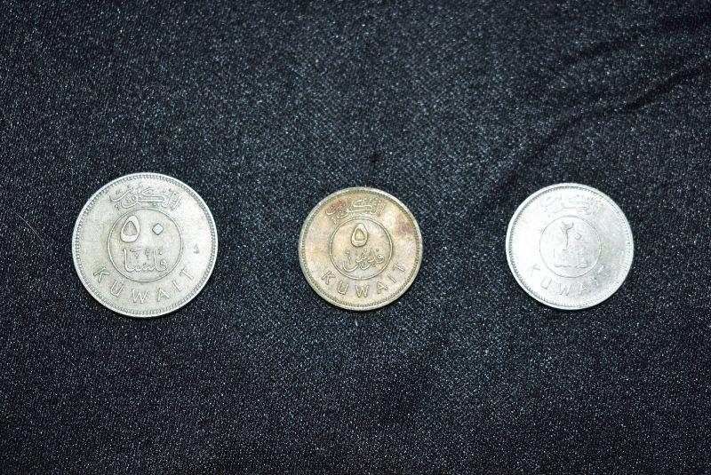 1944/1294 Kuwait 50 Fils, 1949/1299 Kuwait 5 Fils, and 1951/1301 Kuwait 20 Fils