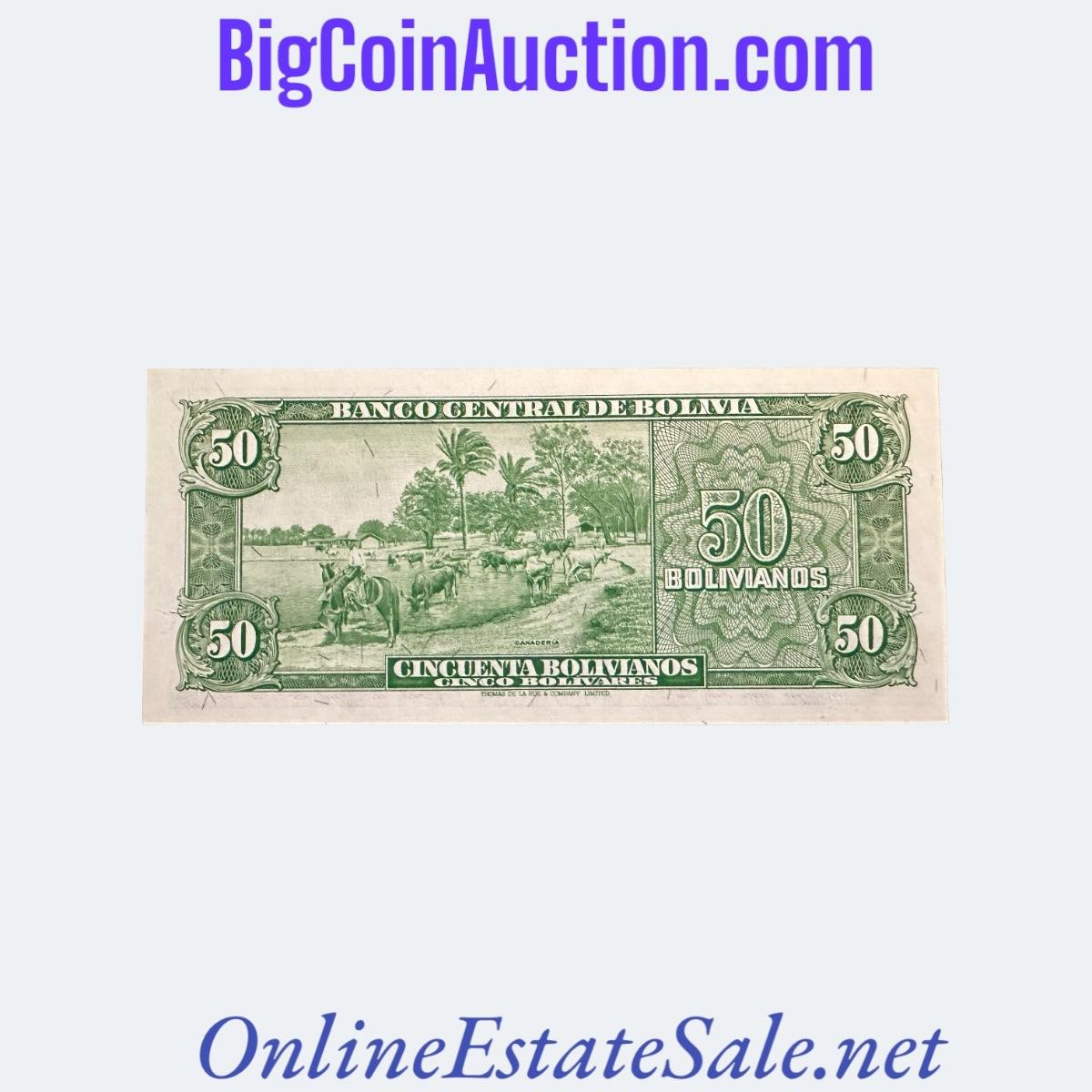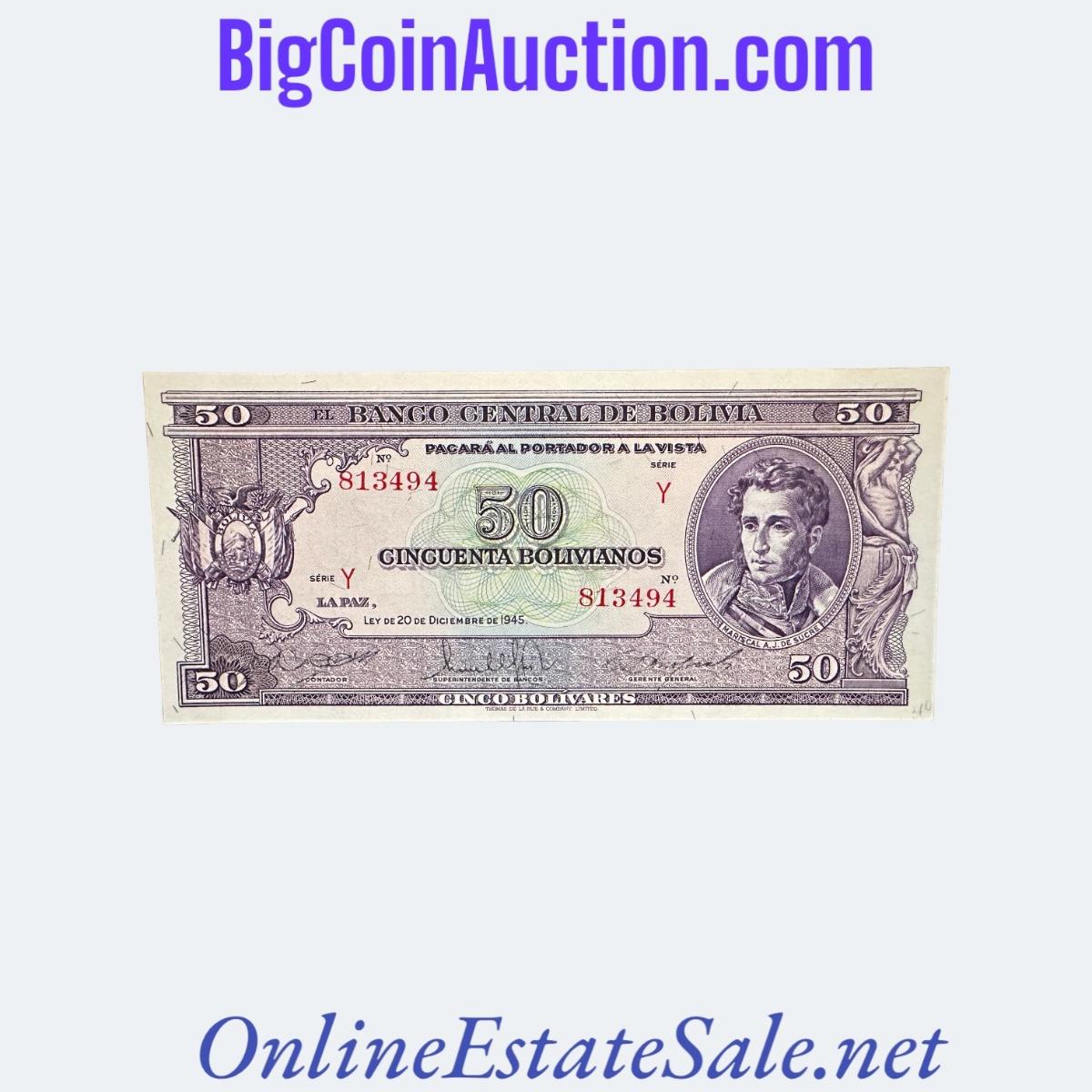 P141 GEM CU 1945 BOLIVIA 50 BOLIVIANOS
