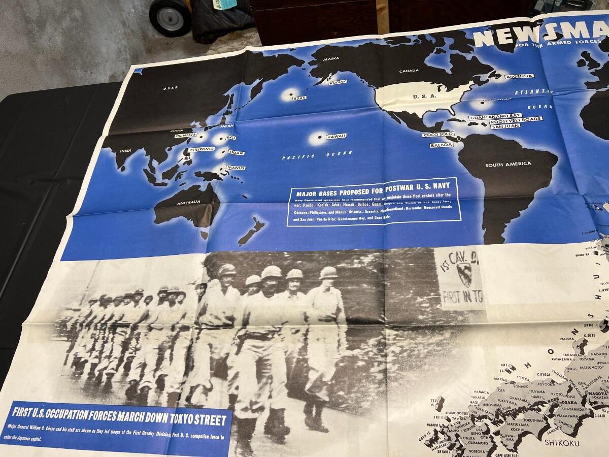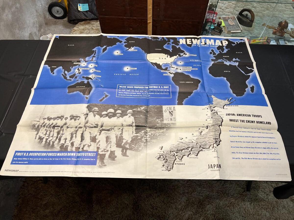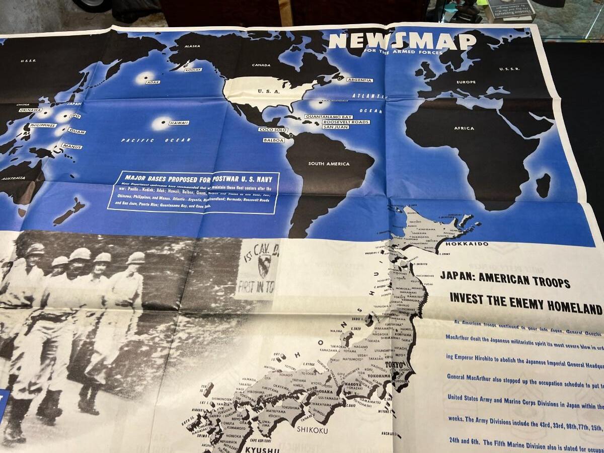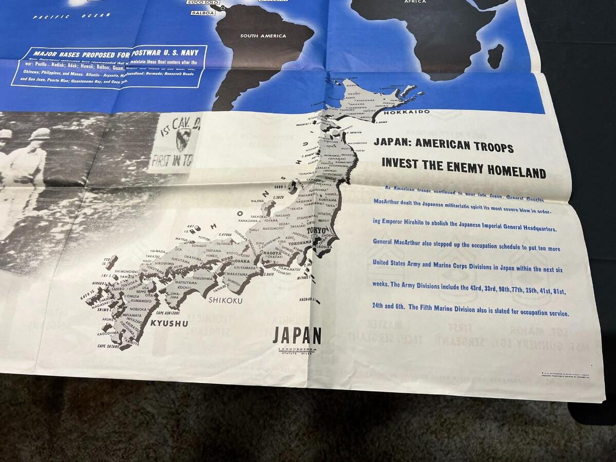 1945 News Map for the Armed Forces of WW2 American Troops and Japan