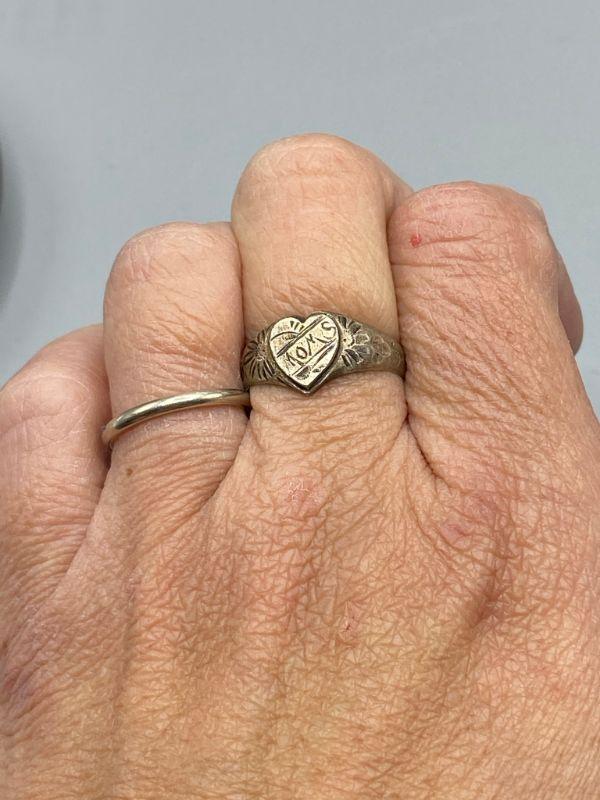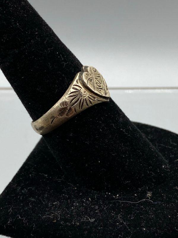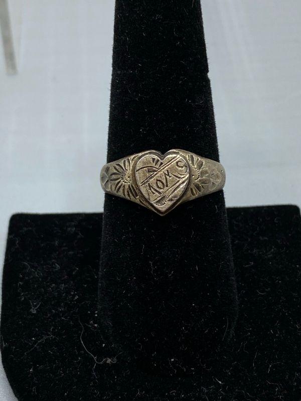 1945 WWII Sterling Silver Moms Heart Ring Engraved