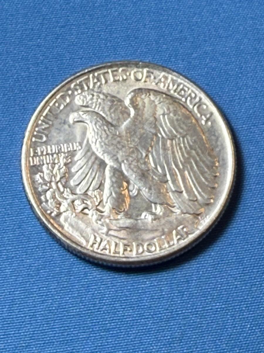 1945-P AU50 CONDITION WALKING LIBERTY SILVER HALF DOLLAR AS PICTURED. (COIN 30). $5 DOMESTIC SHIPPING.