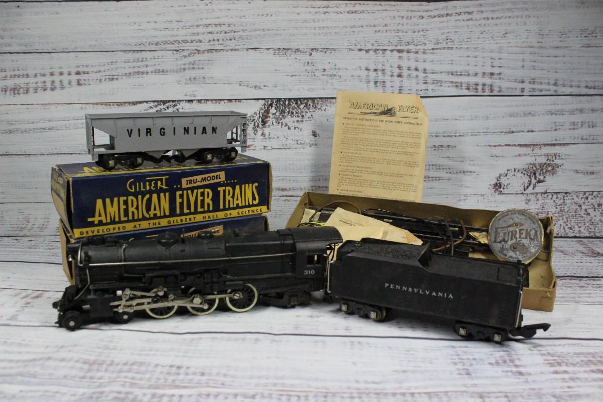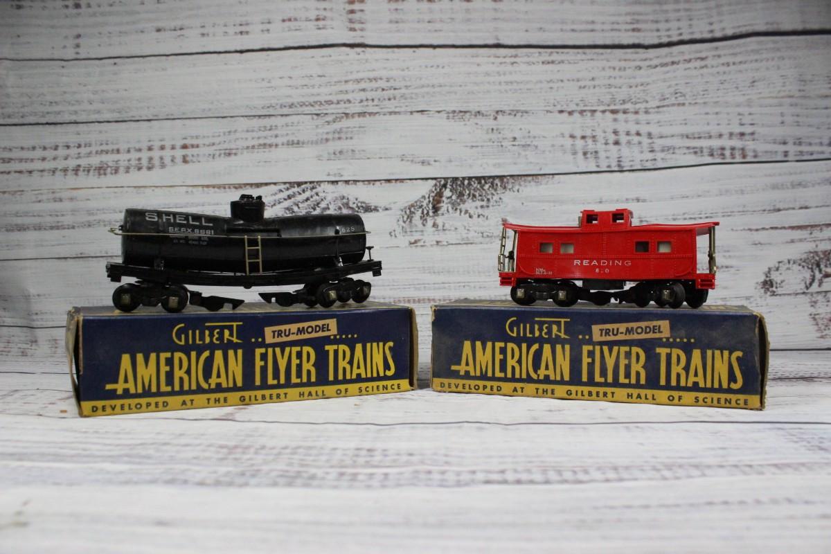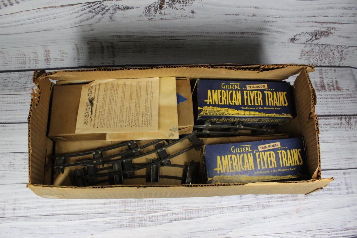 Antique American Flyer train set from 1946. There is noticeable wear to the set, one of the cabooses is warped due to the temperature that it was stored in. Comes with original instructions and boxes, this set was untested.