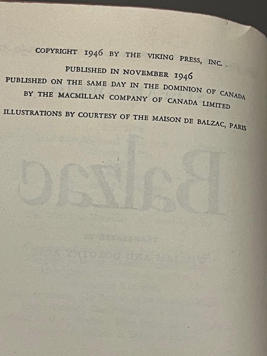 Original 1946 U.S. first edition of Balzac by the renowned Austrian writer Stefan Zweig, published by Viking Press. Zweig, one of the most popular European authors of the early 20th century, was known for his psychological insight and masterful biographical works.