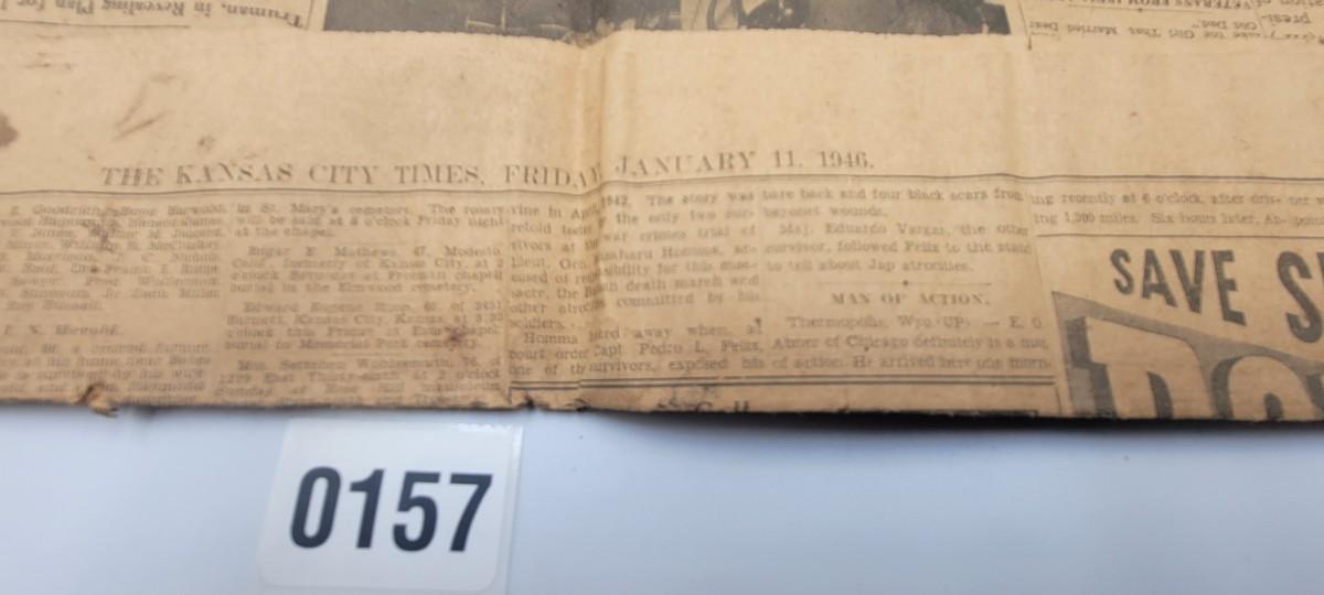 See what was in the news on Friday January 11, 1946. See the prices of goods during a time period long gone. Cannot guarantee that the paper is in its entirety from that period but it is a neat piece nonetheless.