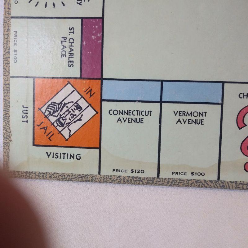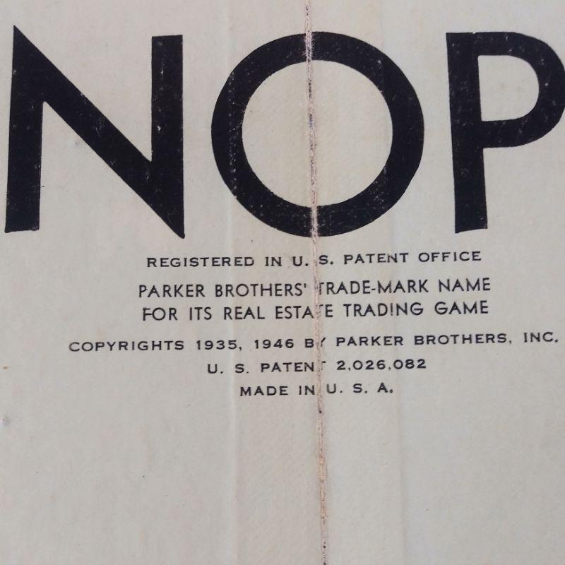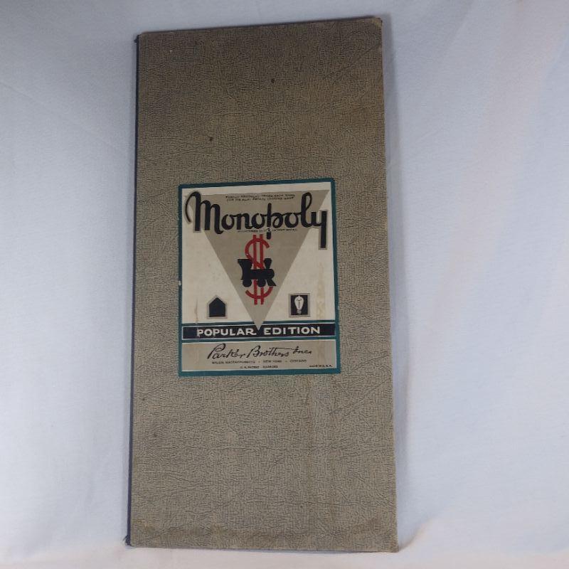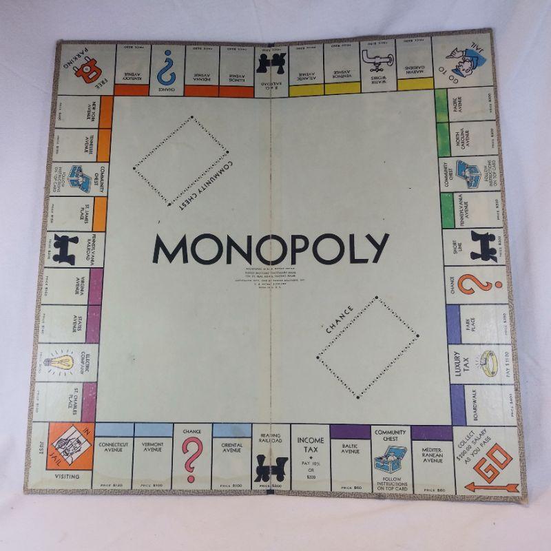 Often the boards of older game succumb to the ravages of time. So just in case you happen to need the board to go with your 1940's small box Monopoly Game we offer this here. Would also make a good decoration for a game room. It measures 19 1/4-inches square when open. It has a light water stain on bottom of board but otherwise is in good condition.