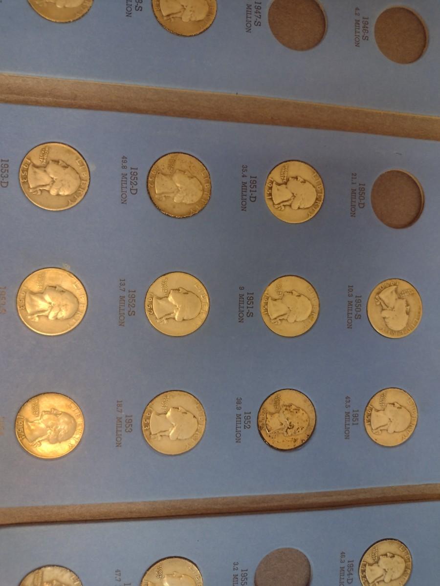 1946 to 1959 Washington Head Quarter Silver Coin Collection as Shown (#67). Incomplete set as shown.