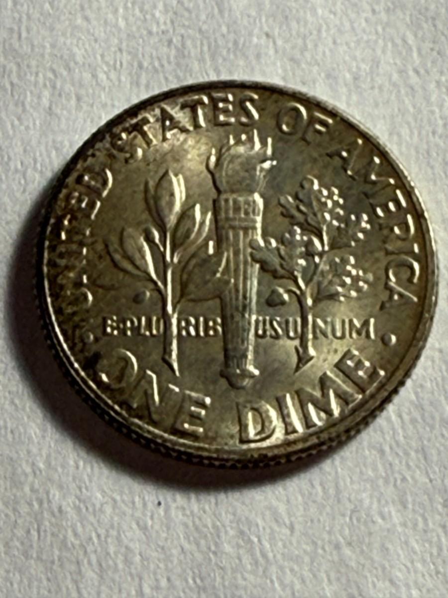 1946-P UNCIRCULATED/LIGHTLY TONED ROOSEVELT SILVER DIME AS PICTURED. $5 DOMESTIC SHIPPING.
