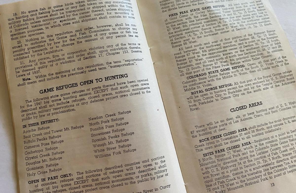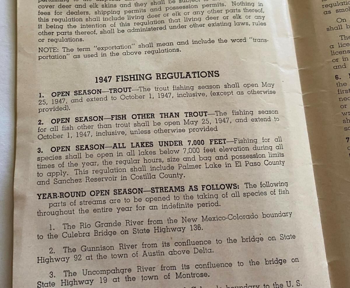 1947 COLORADO HUNTING & FISHING REGULATIONS BOOKLET