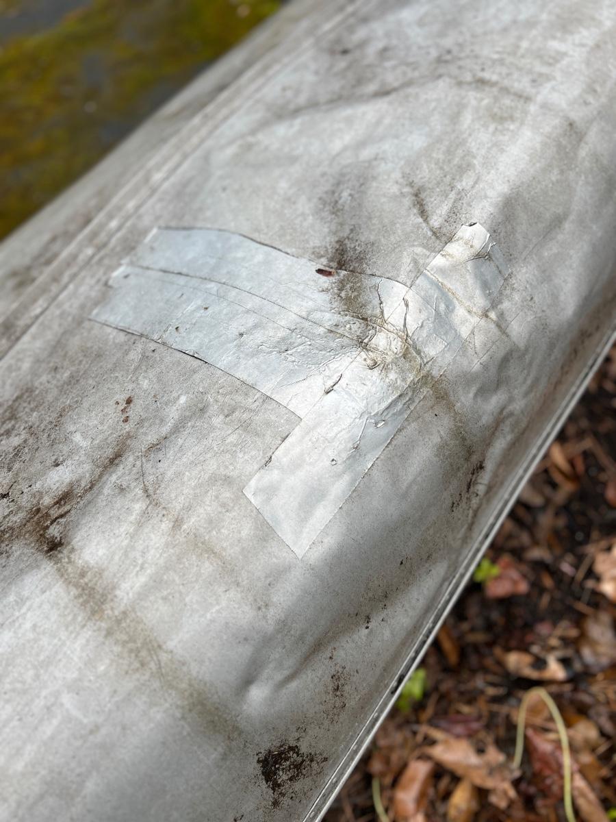 Production number 64, made in 1947, 30 mils. thick, 17 ft. long. Looks to have a patch as shown in pics. See all pics for condition.