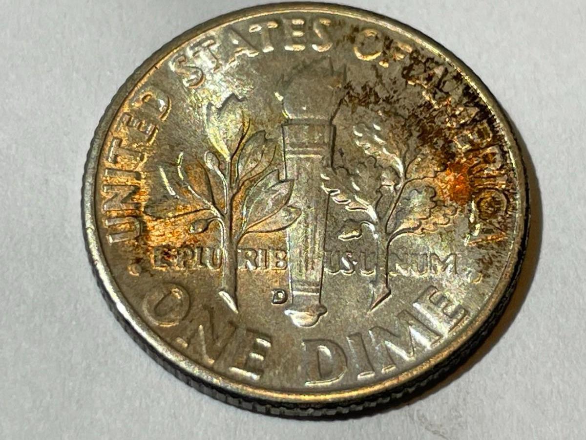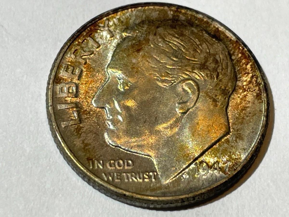 1947-D BU ORIGINAL TONED ROOSEVELT SILVER DIME FOR THE TONED LOVERS. $5 DOMESTIC SHIPPING. (On Multiple Lots Won the Shipping Fee will be Combined or Adjusted Accordingly)