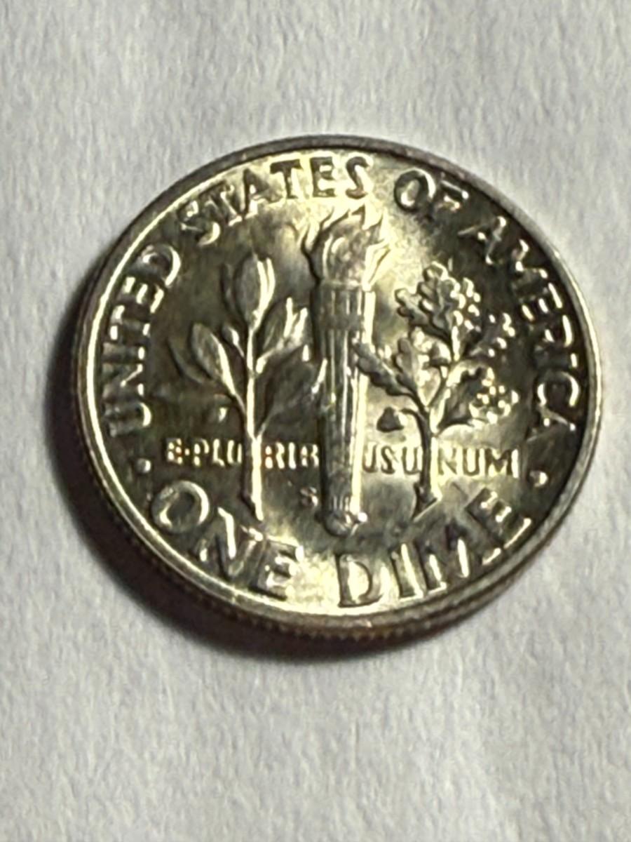 1947-S UNCIRCULATED/LIGHTLY TONED ROOSEVELT SILVER DIME AS PICTURED. $5 DOMESTIC SHIPPING.
