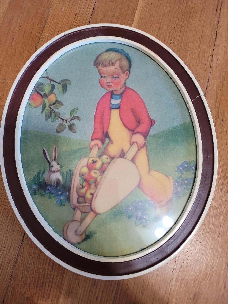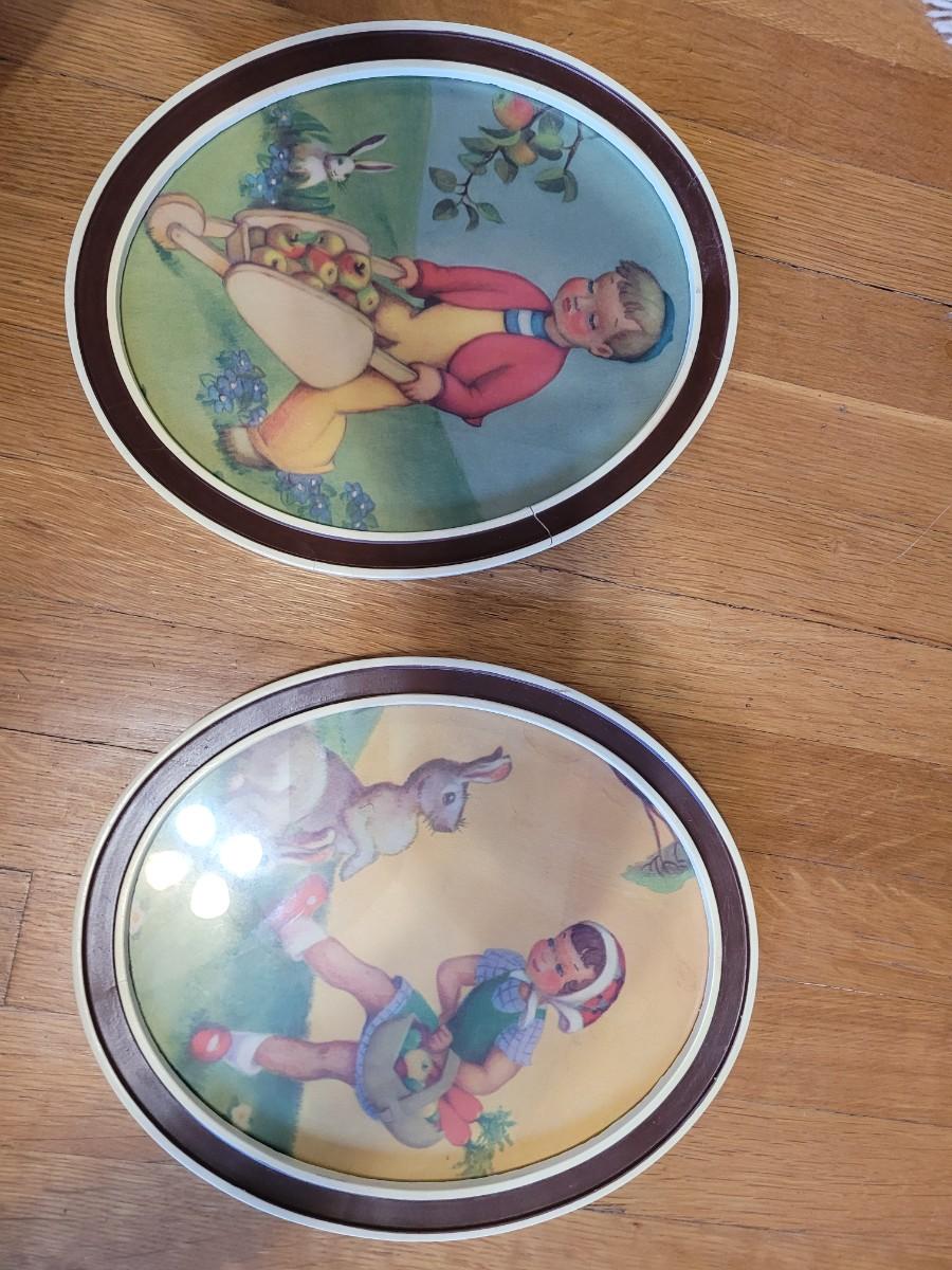 Vintage, These look as if they were a gift in 1948, see the pencil drawings on the back. The one with the little boy has a cracked frame, see photos.