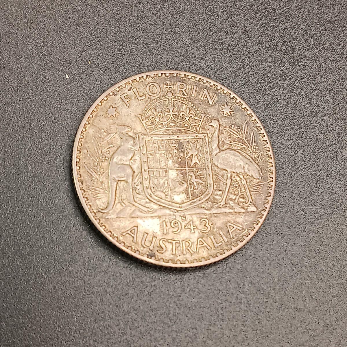 1948 FIVE PESOS SILVER (30 GRAMS) & 1943 FLORIN SILVER AUSTRALIA COIN