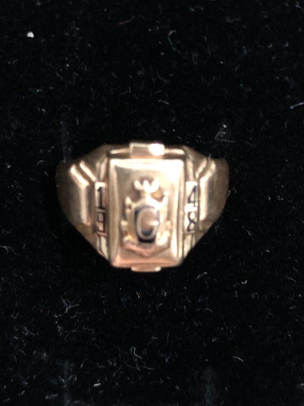 1948 Gloucester MA High School Ring. This is a very small size, has some wear, see pics for details. It is marked 10kt gold.