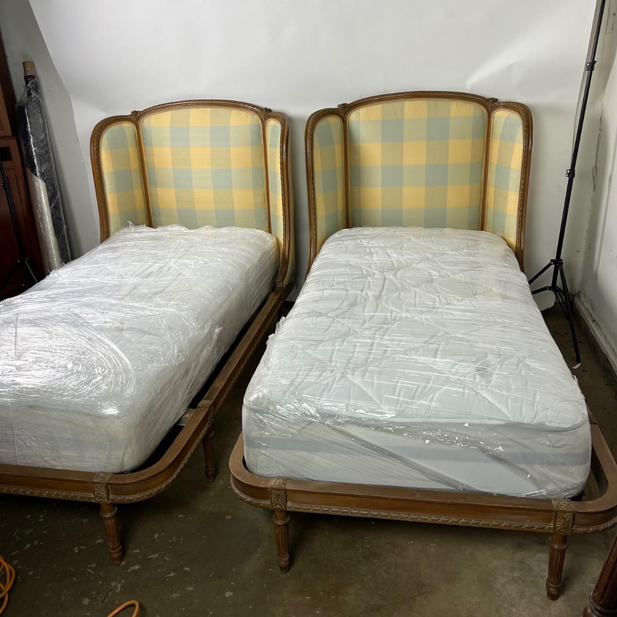 1948 Pair of Antique Custom Upholstered French Twin Beds