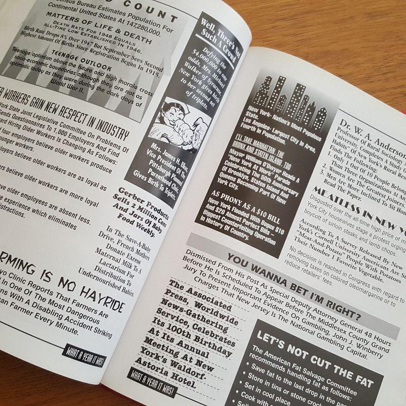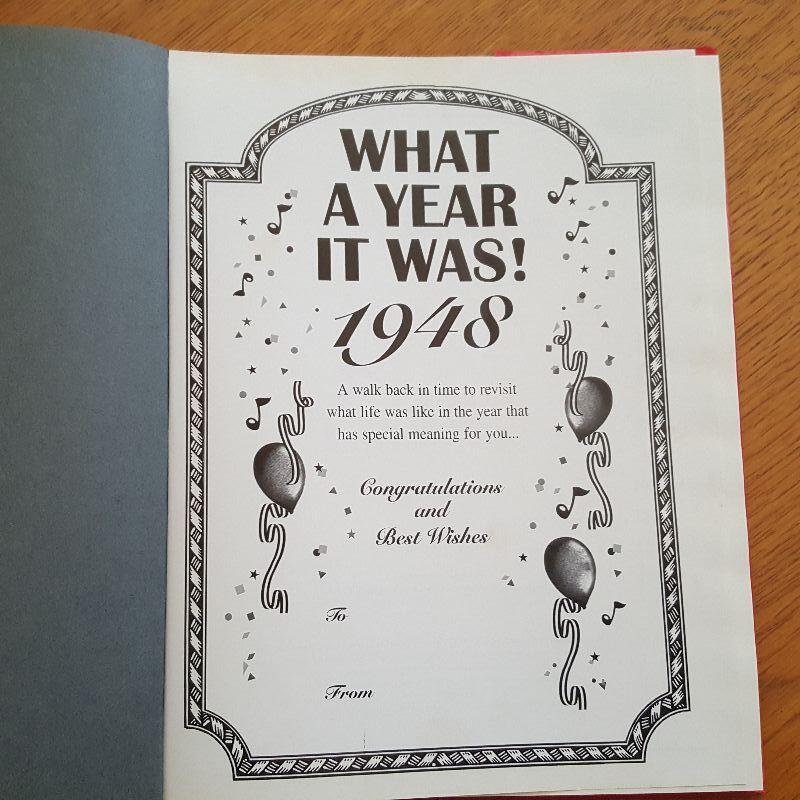 This auction lot is for an as new book entitled 1948 - What A Year It Was! Published and designed to be given to someone special who was born in that great year - one of the early baby boomer years. Full of nifty graphics and information - this hard bound 176 page book is in great shape with a very nice dust jacket.