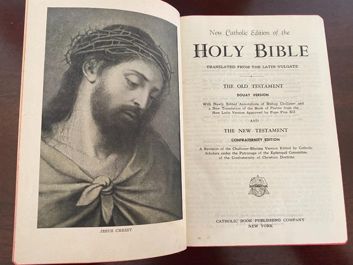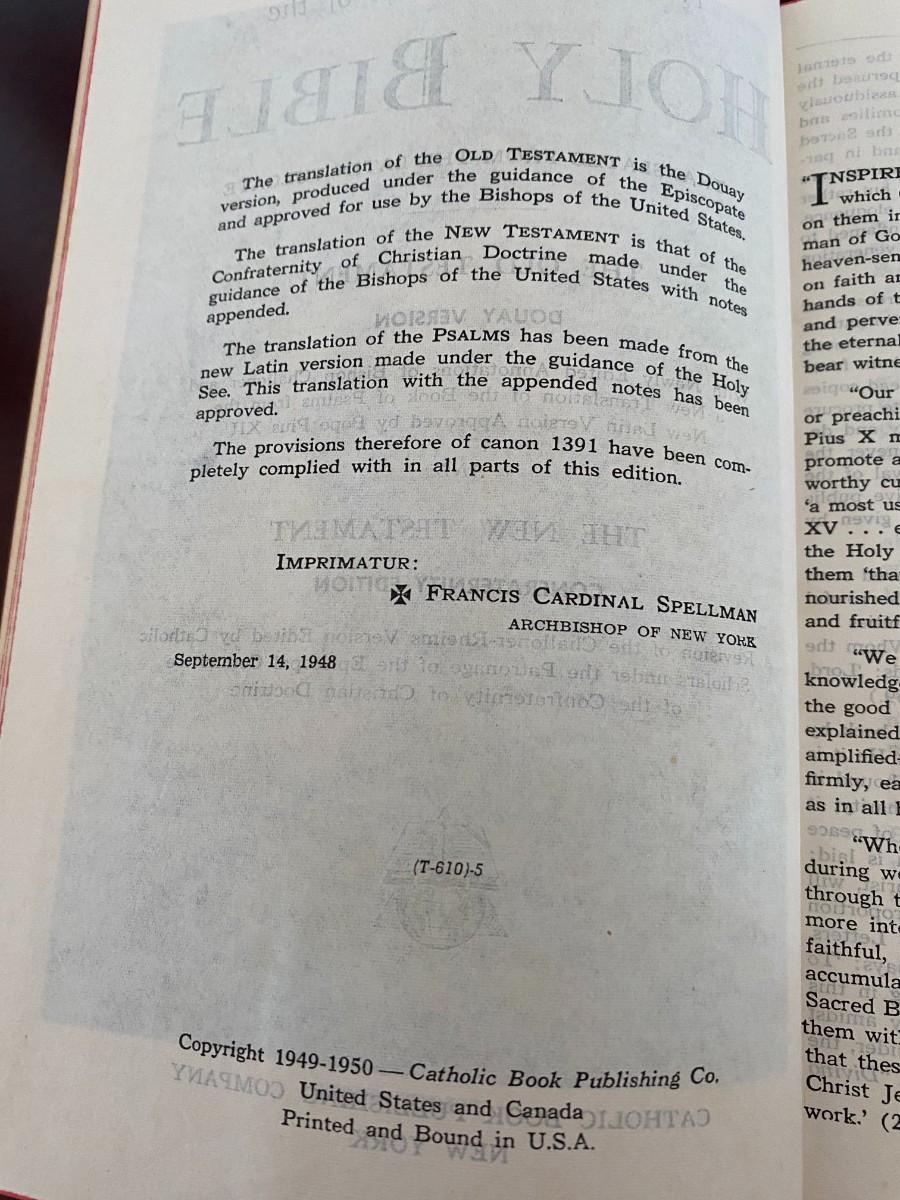 1949 New Catholic Edition of the Holy Bible. Vintage. Very good condition. Approx. 8-1/2" H x 6" W