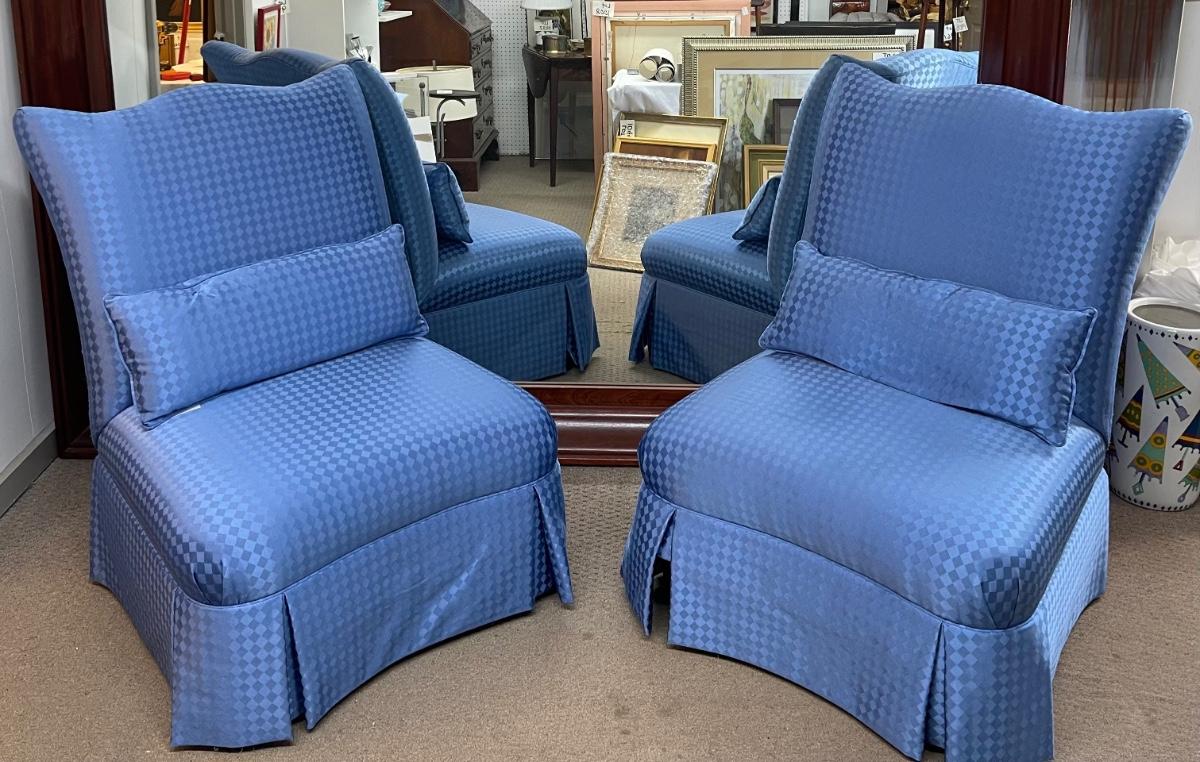 1949 Pair of Beautiful LANE VENTURE Diamond Jacquard Upholstered Blue Fabric