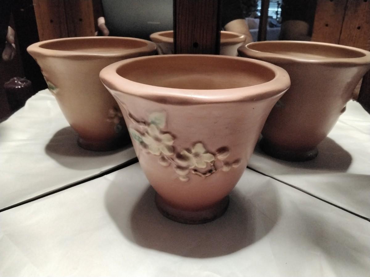1949 Roseville Pottery Apple Blossom Pink Flower Pot 356-5