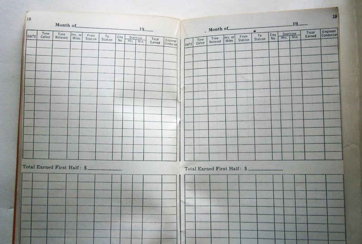 1949 RR Time Recording Book, 7 1/2 x 4 in., unused.