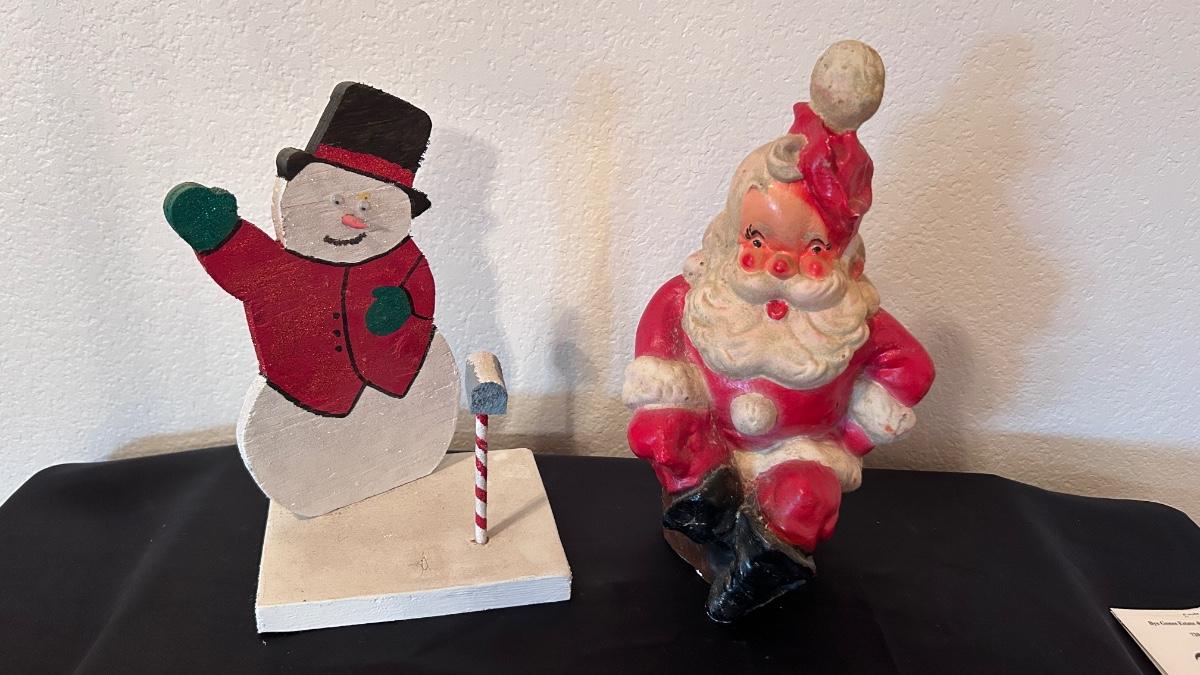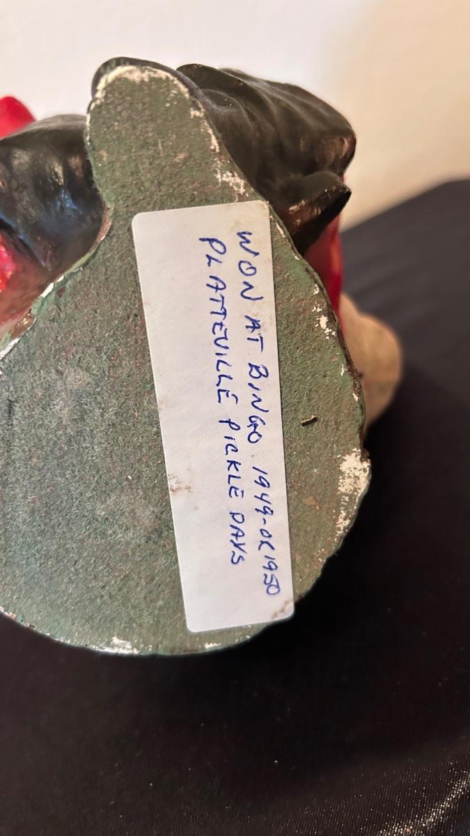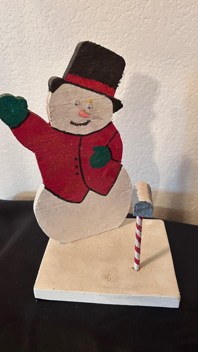 1949 SANTA CLAUSE BANK BINGO WINNER PRIZE AND WOODEN SNOWMAN
