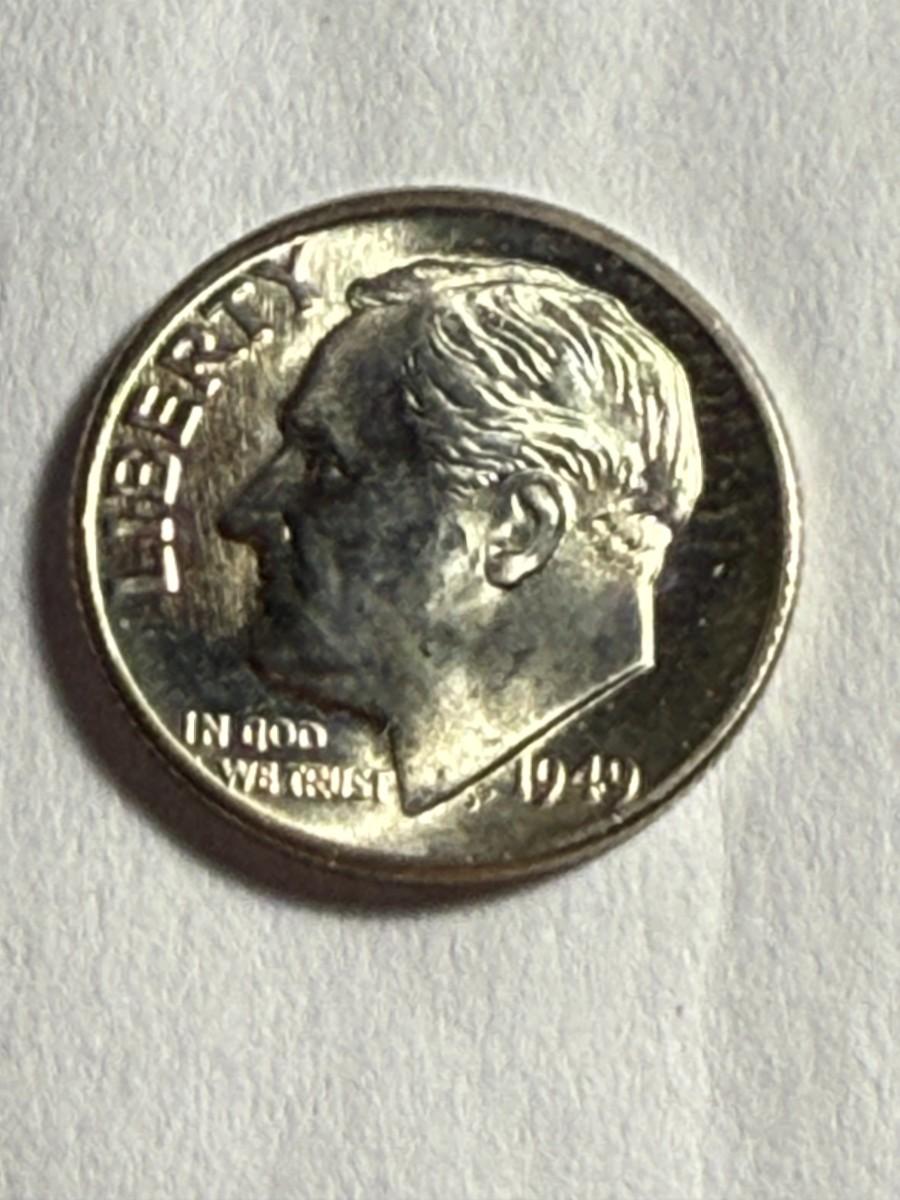 1949-D UNCIRCULATED/VERY LIGHTLY TONED ROOSEVELT SILVER DIME AS PICTURED. $5 DOMESTIC SHIPPING.