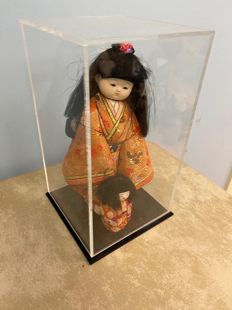 #194B Asian Doll in Traditional Dress with Plexi Glass Cover
