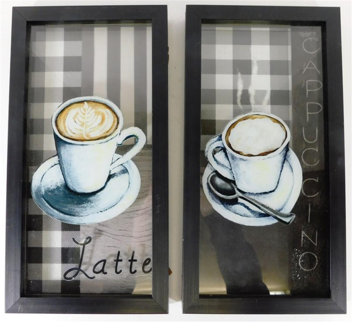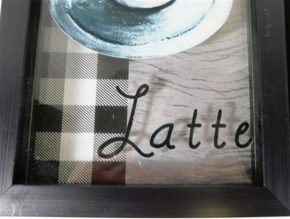 195 10 1/2 Small Wooden Dough Bowl - 7 x 14 Lot of 2 Plaid Coffee Shadow Box Style Pictures- 15" Wooden Sculpture of Lily Pads and Leaves (Stems and Leaves are placed not Attached) 17" (with handles) Wooden Rolling Pin