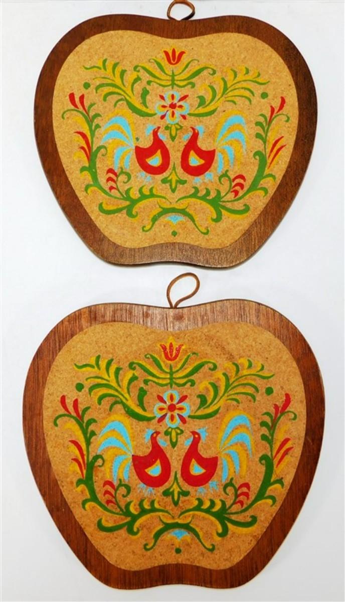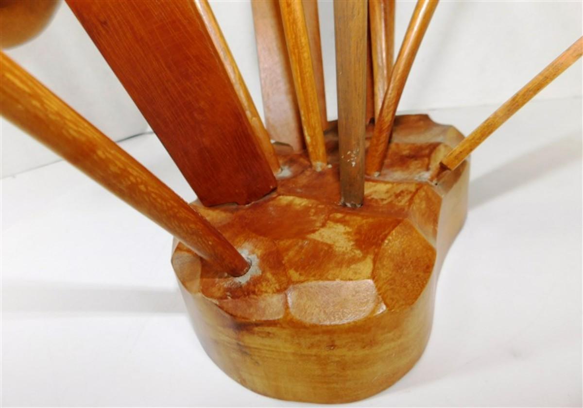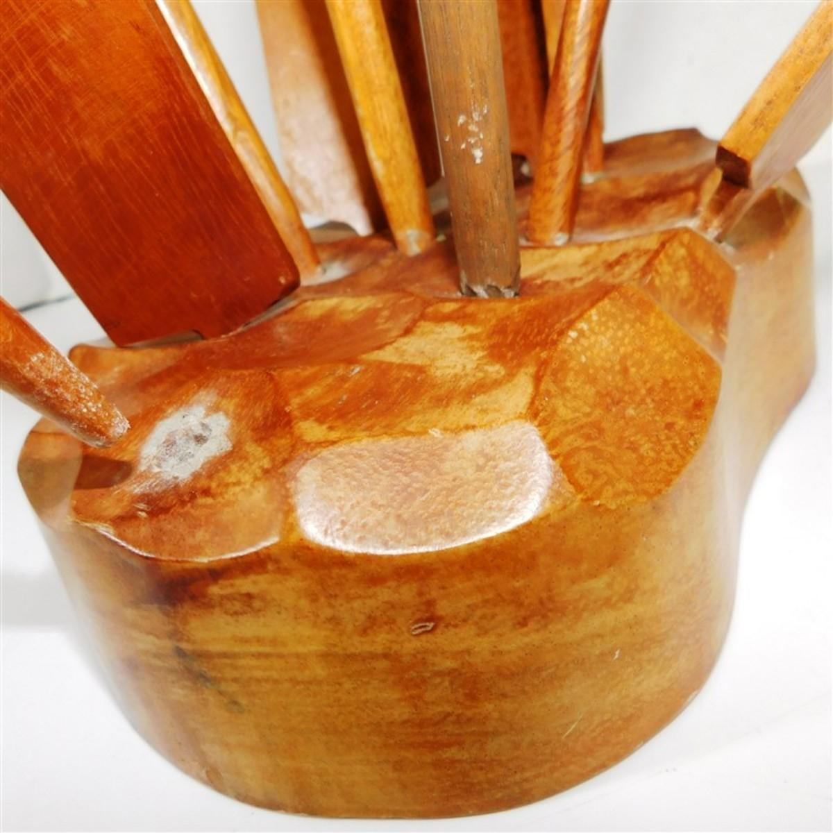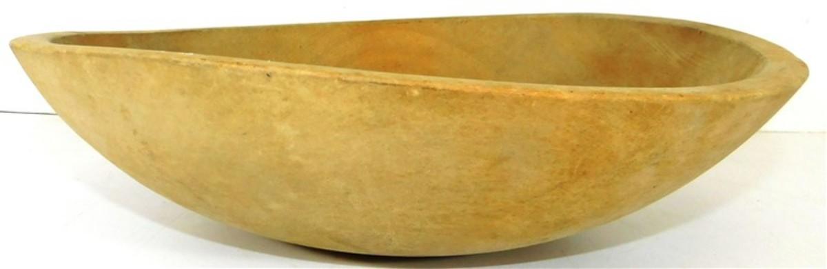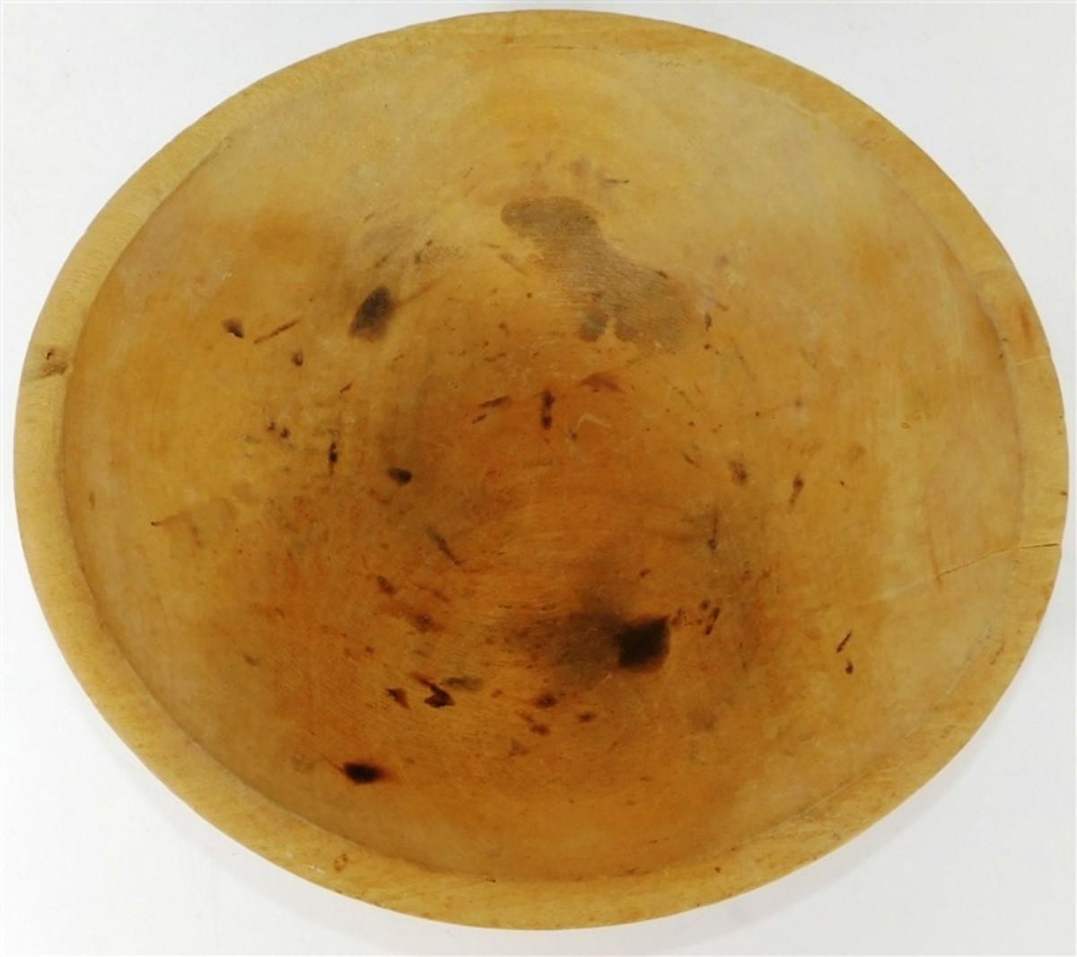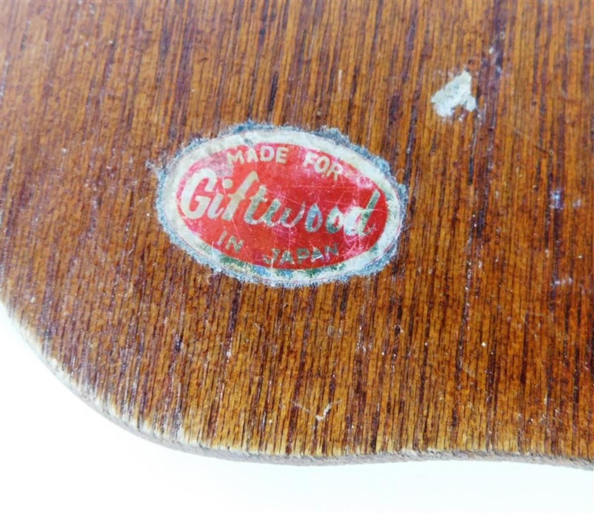195 10 1/2 Small Wooden Dough Bowl - 7 x 14 Lot of 2 Plaid Coffee Shadow Box Style Pictures- 15" Wooden Sculpture of Lily Pads and Leaves 17" w/handles Wooden Rolling Pin