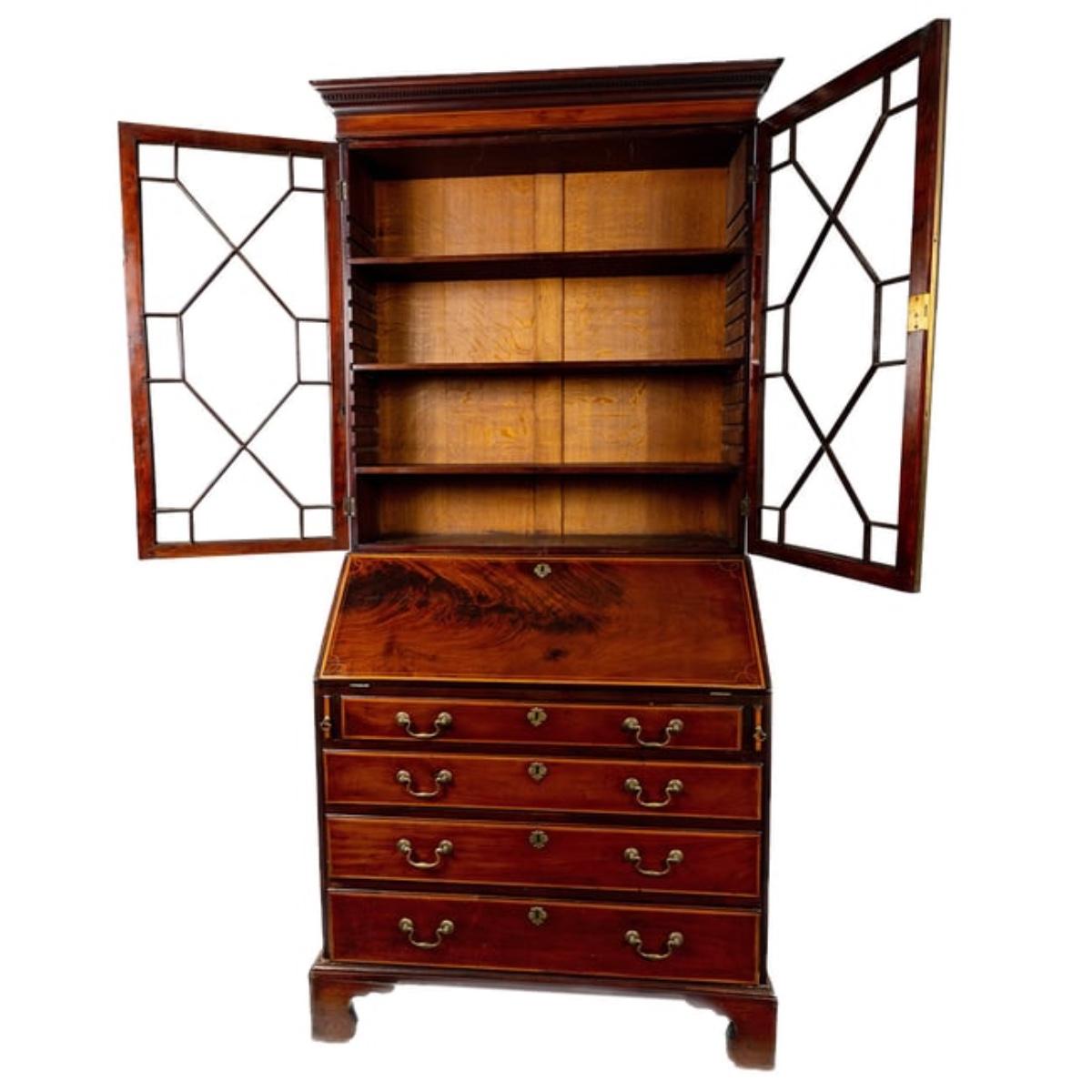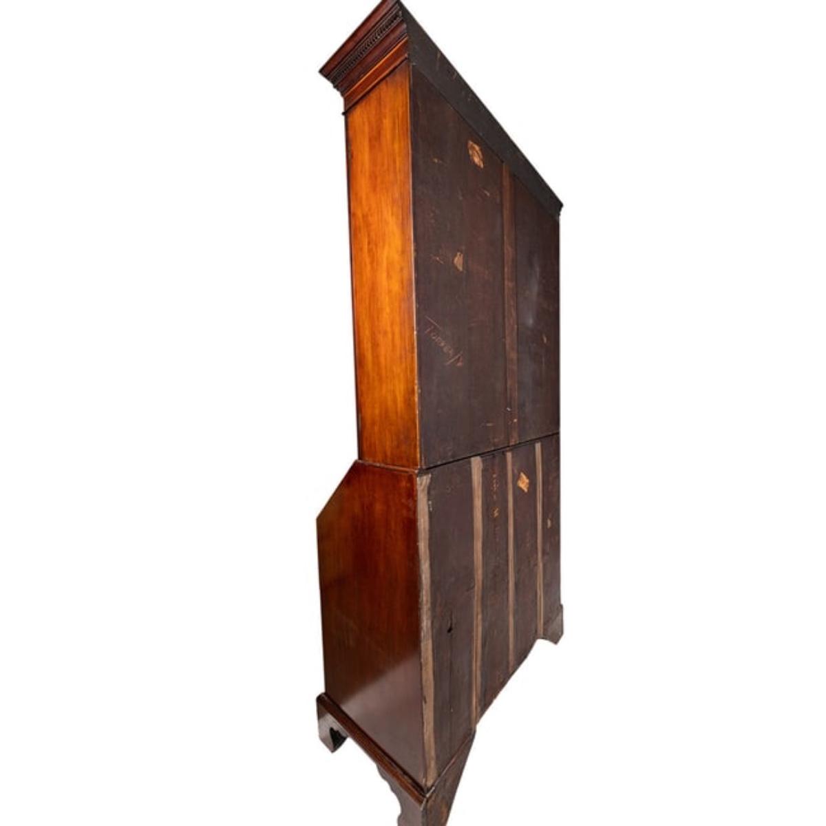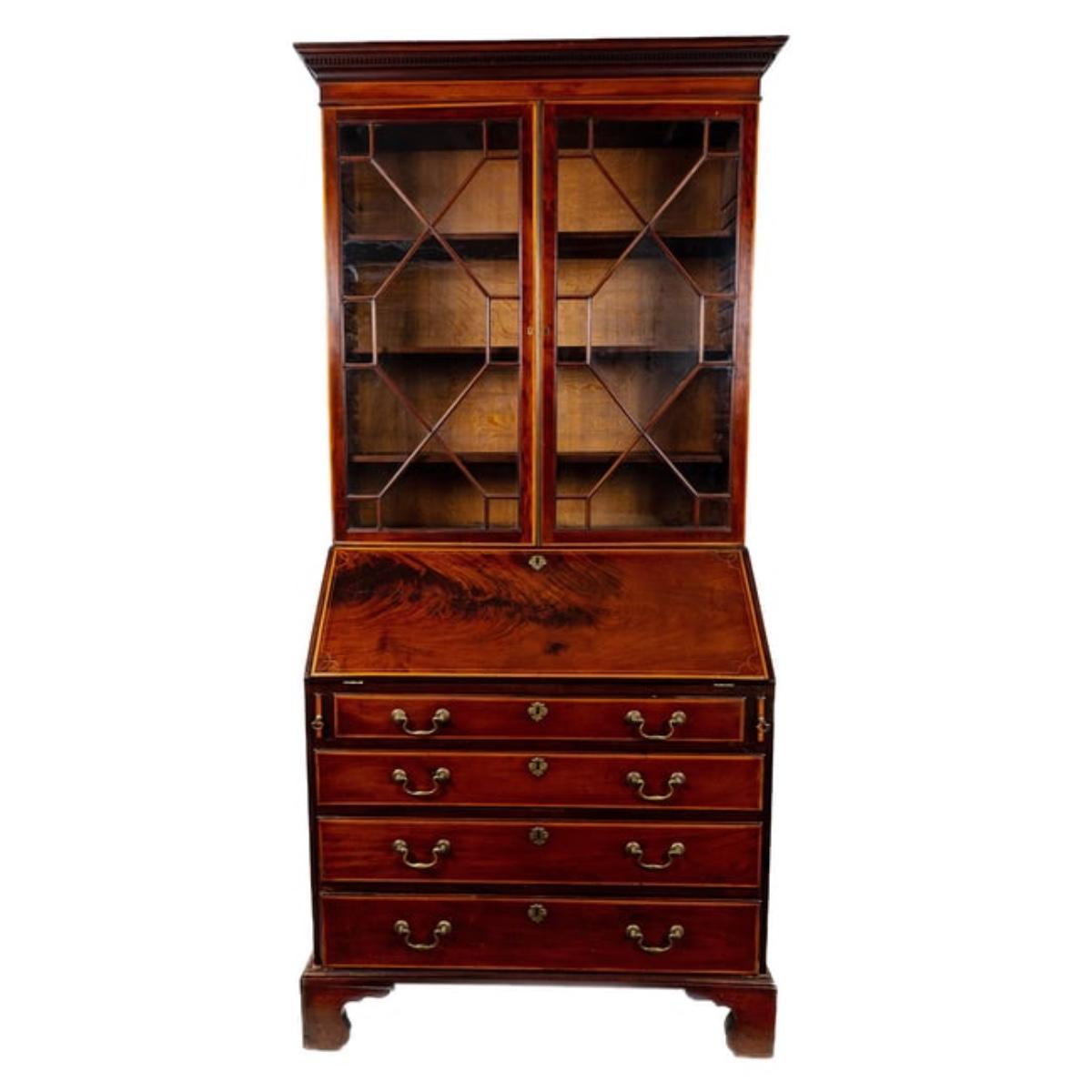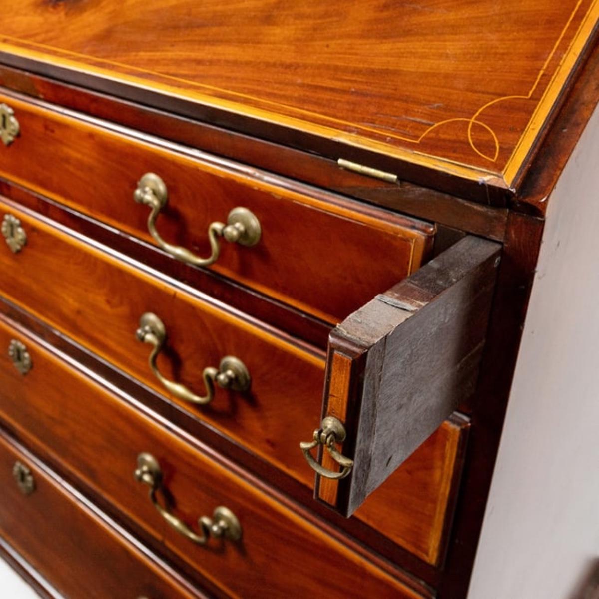 362 Antique English George III Inlaid Mahogany Slant Front Bureau