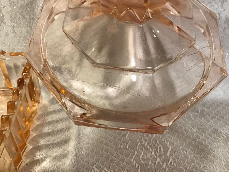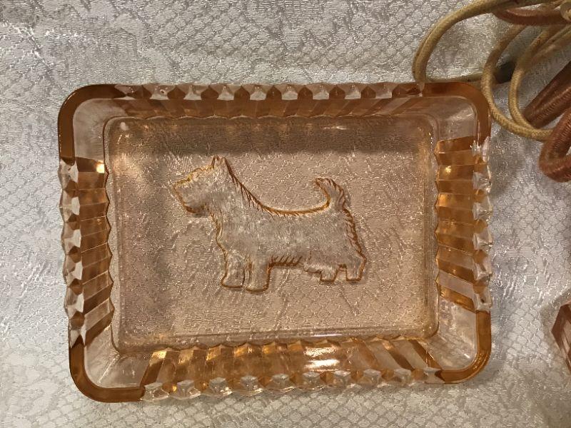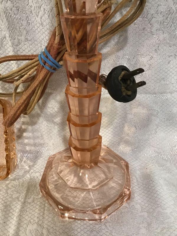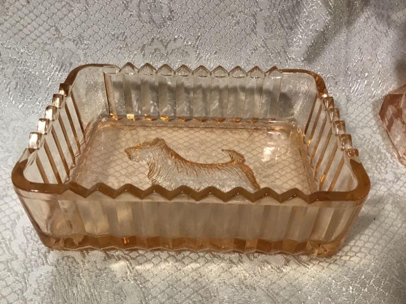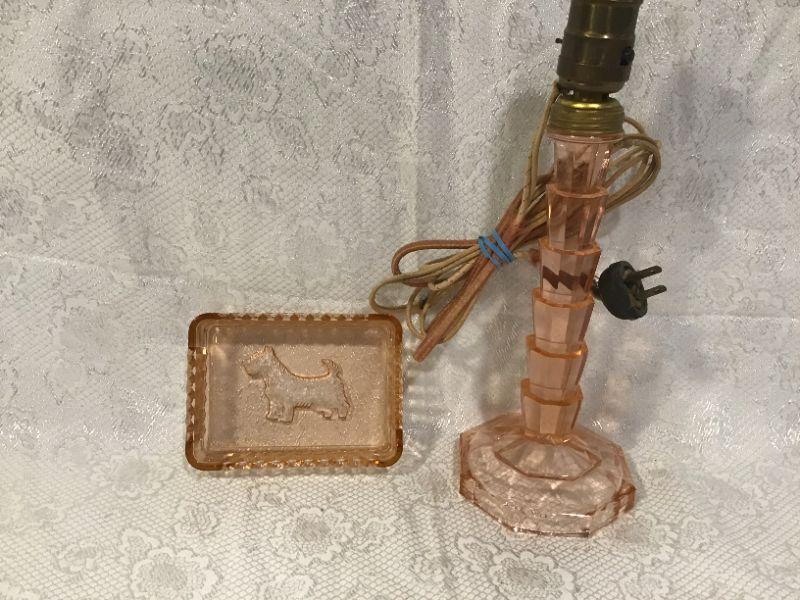 195 - Pink Depression Glass Lamp & Scotty Trinket Box (no chips)