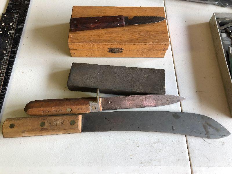 195: Vintage Collection of Knives with Sharpeners