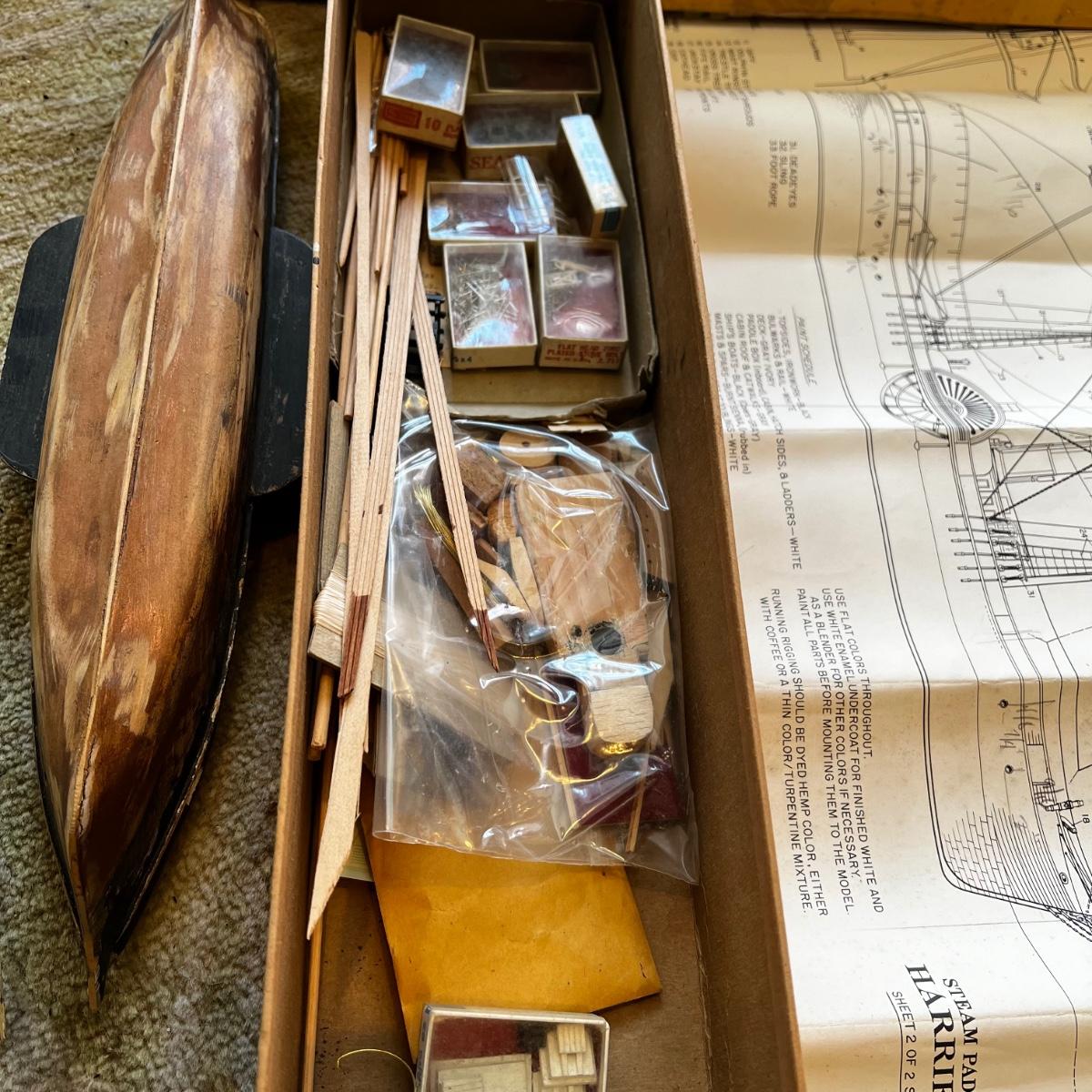 This kit has already been attempted. There is no saying if it has missing parts. Seems someone has only started painting the body of the ship. All hardware is still in it’s original box