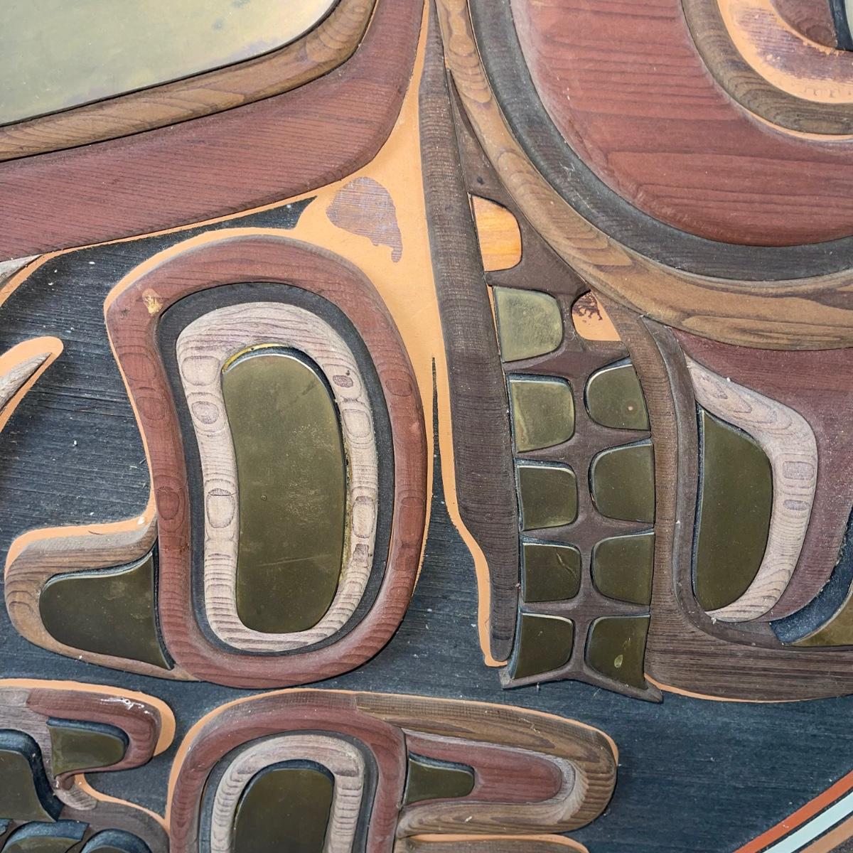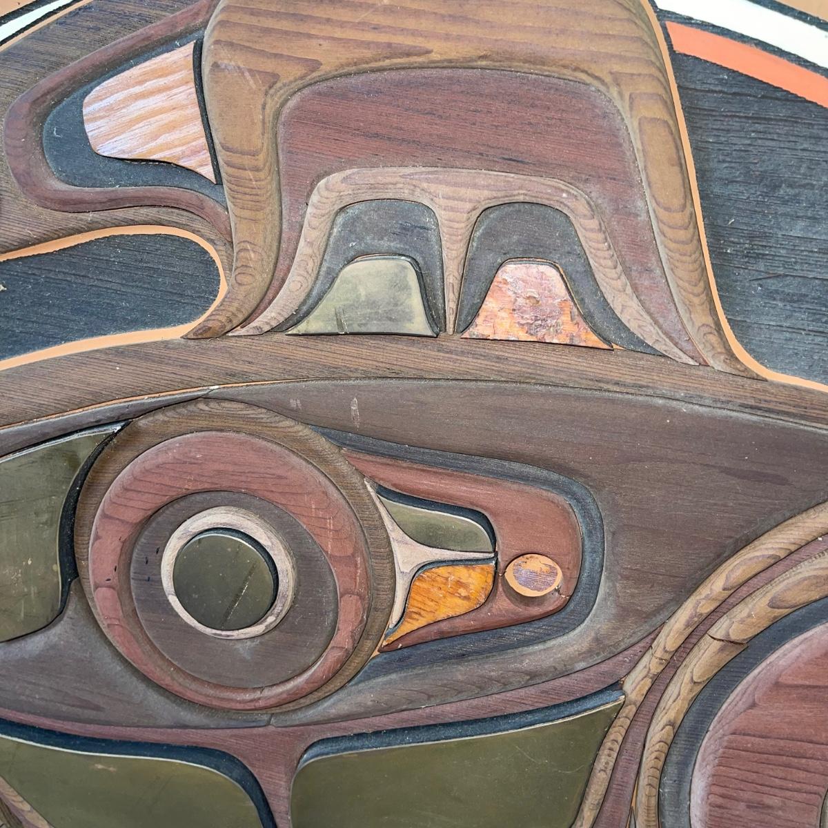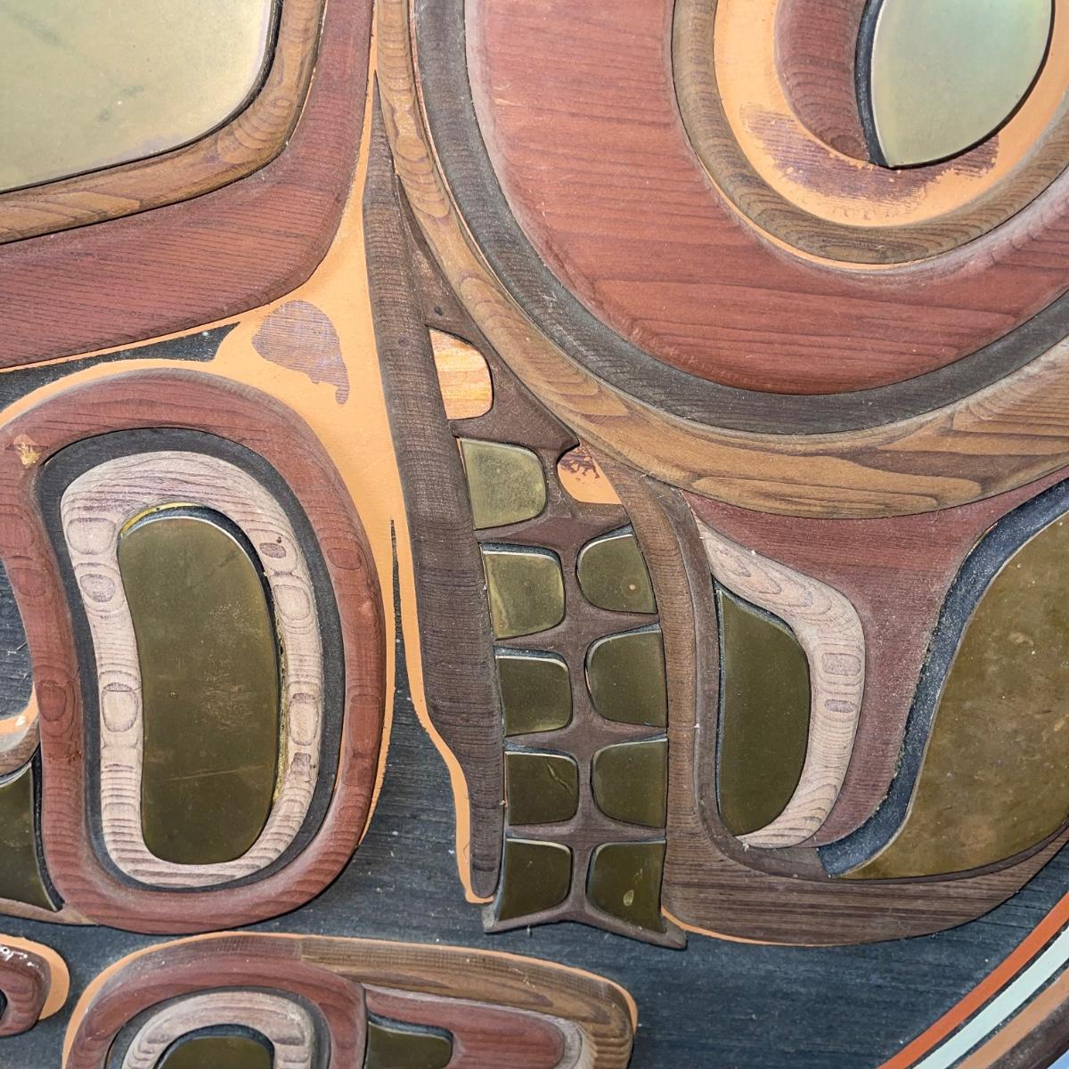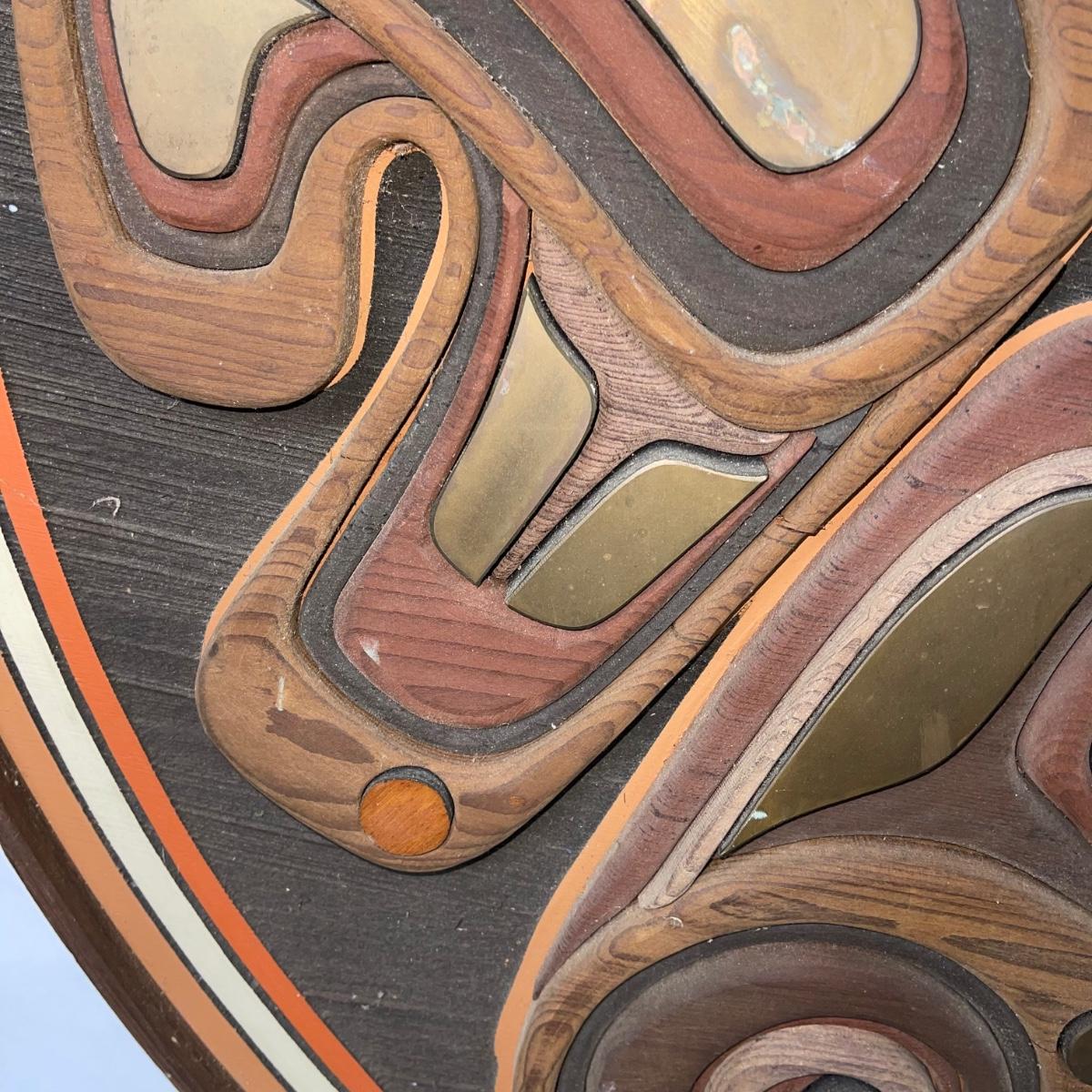 Alaskan Artist Wood and Metal Artwork measuring 44.5" diameter