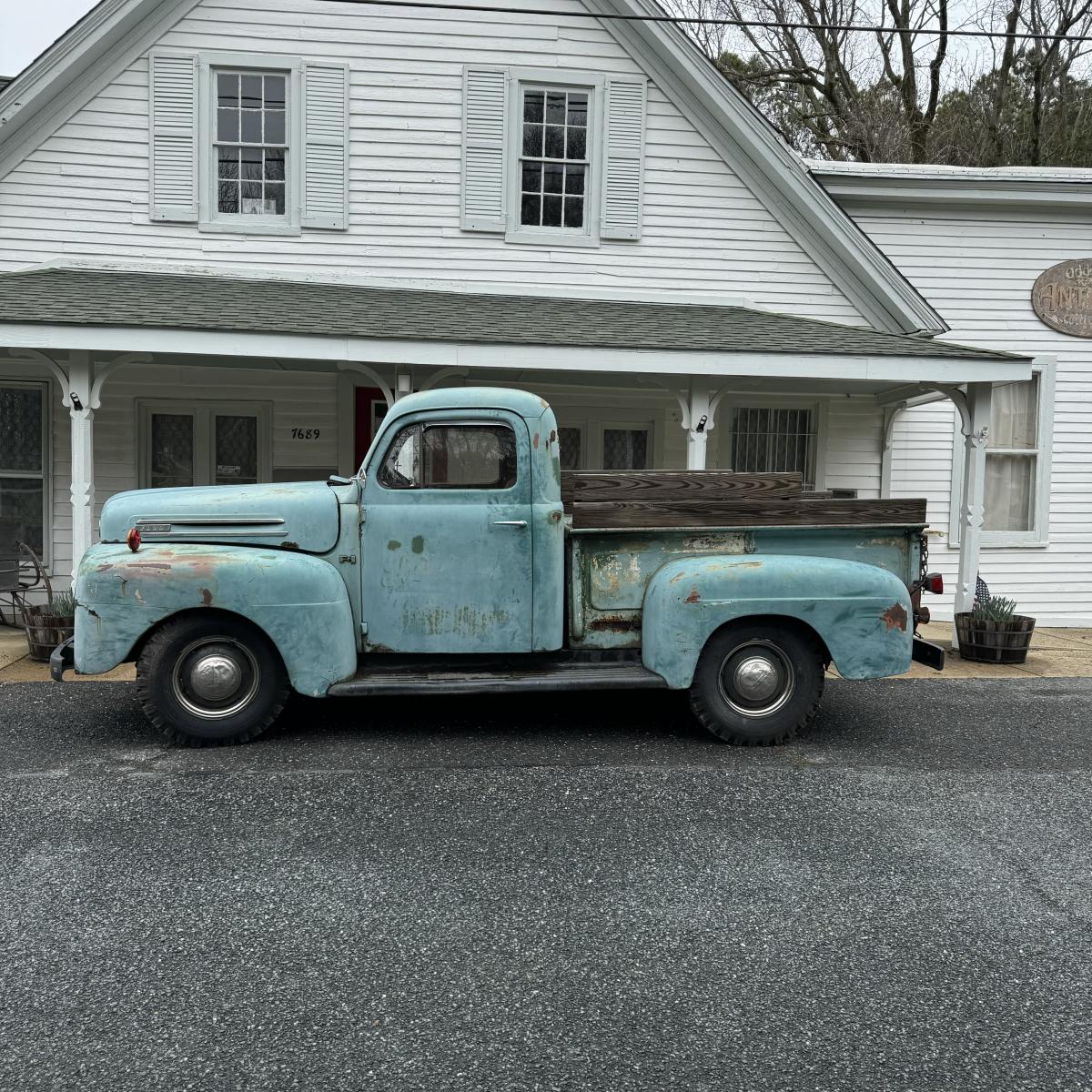 1950 Vintage Ford F1 Truck. Don’t miss this opportunity to bid on this classic truck. Equipped with the original V6 Engine And 3-Speed Manual Transmission. Overall condition is good considering its age. The trucks body needs some repair and has some deep rust spots that should be repaired. In its current condition and original paint this truck showcases a wonderful patina that represents its character. Truck runs fines and may need a tune-up. New battery starter relay & positive battery cable installed early March 2024-please see last pic!!