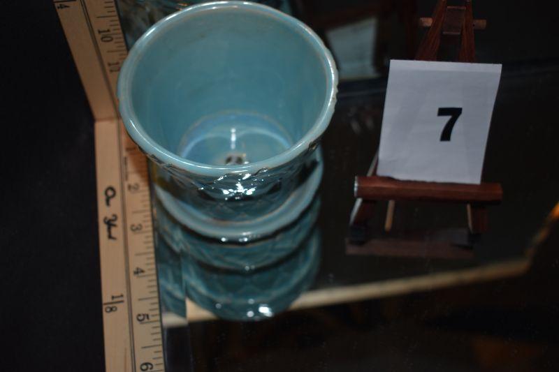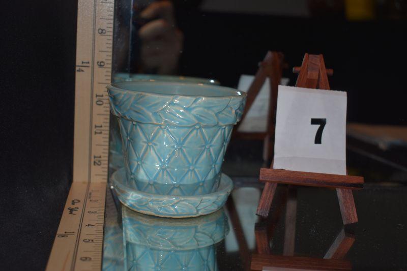 1950 McCoy Quilted Pot & Saucer - Light Blue