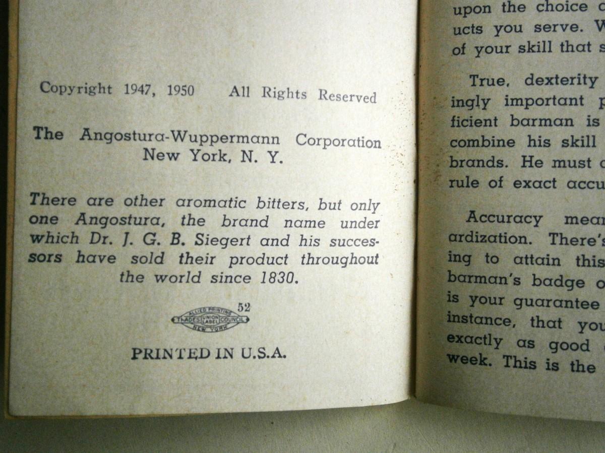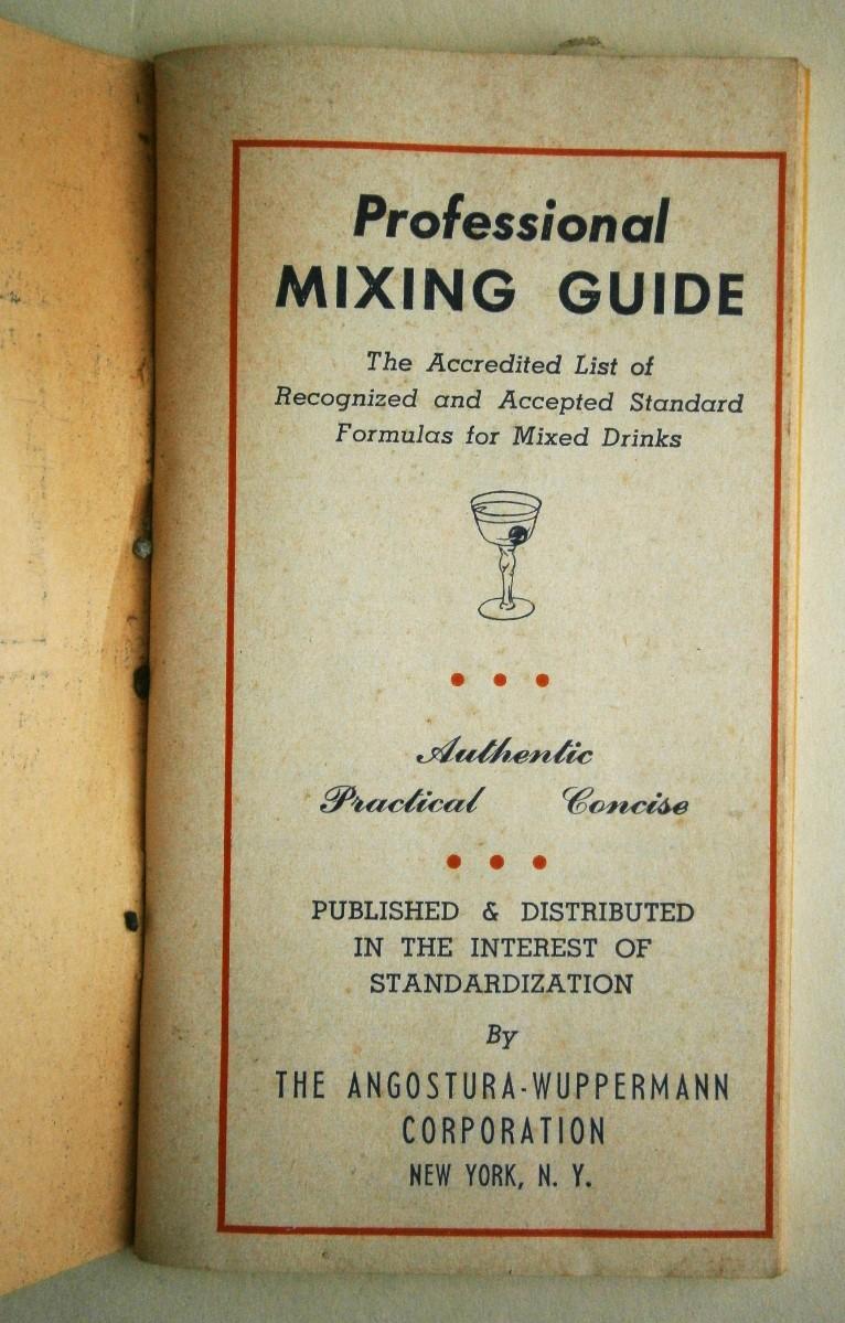 "Professional MIXING GUIDE" Pamphlet copyright 1950 Angostura-Wupermann Corp., 4 3/4 x 2 1/2 in., 96 pages, a Angostura Bitters giveaway.