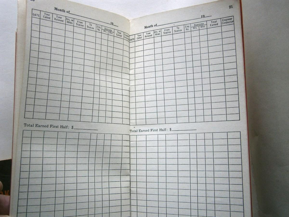 1950 RR Time Recording Book, 7 1/2 x 4 in., unused, corner of cover torn off.