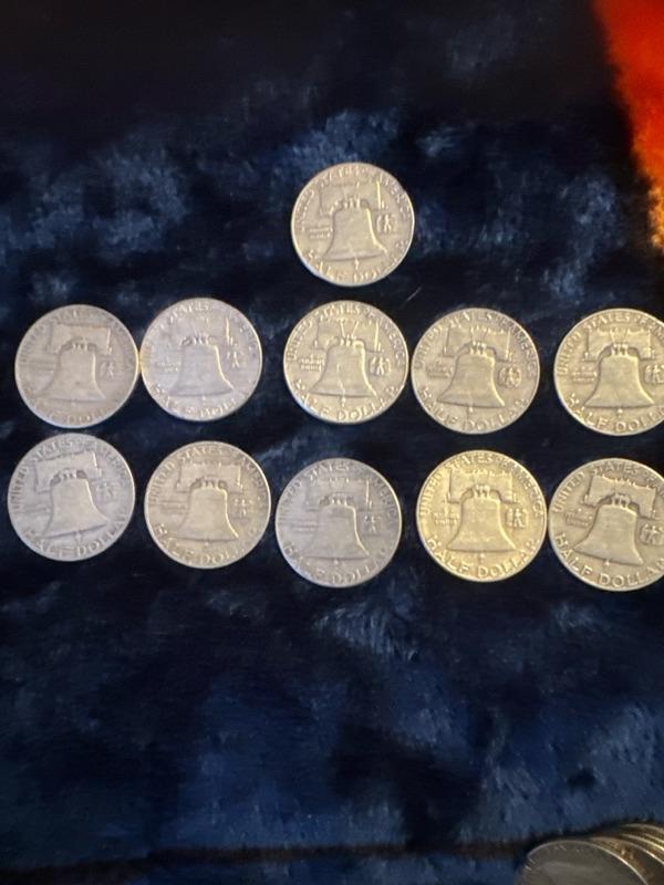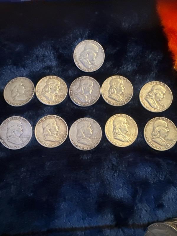 1950-1960 lot of (11) 136.4 grams Benjamin Franklin .50c U S coins SILVER