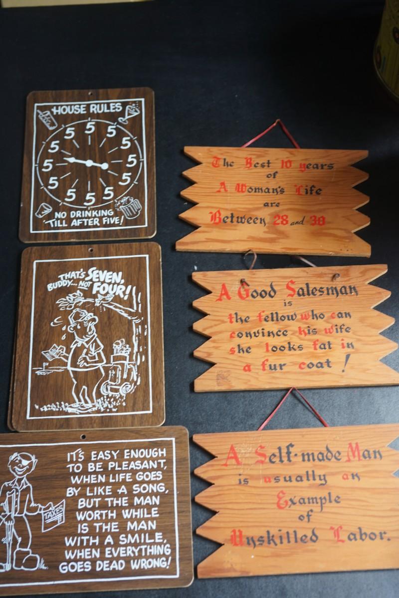 1950-60's PINE JOKE SIGNS THAT WE FOUND HANGING BY THE BAR AREA AT THE HOUSE
