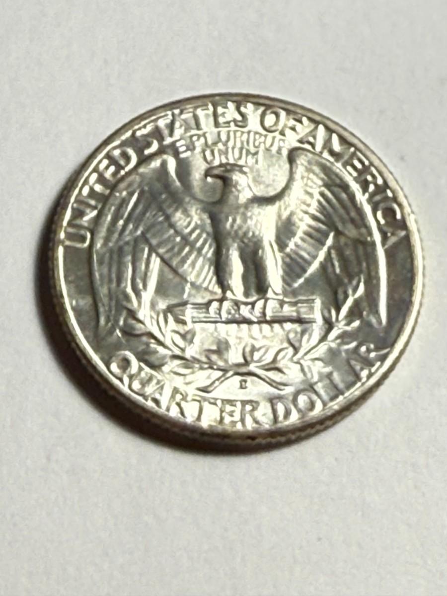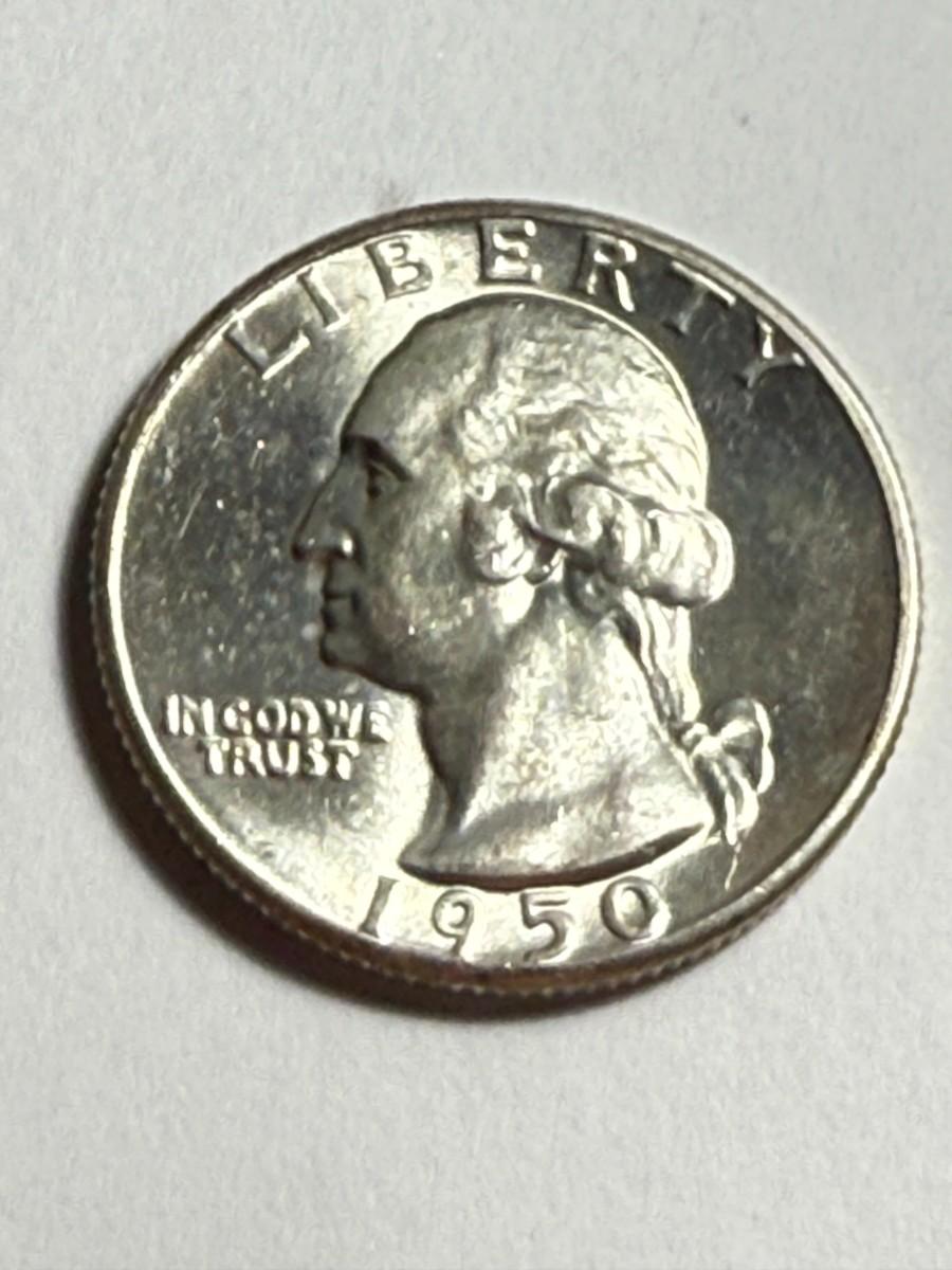 1950-D AU58 CONDITION WASHINGTON SILVER QUARTER AS PICTURED. $5 DOMESTIC SHIPPING.