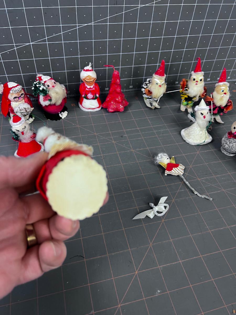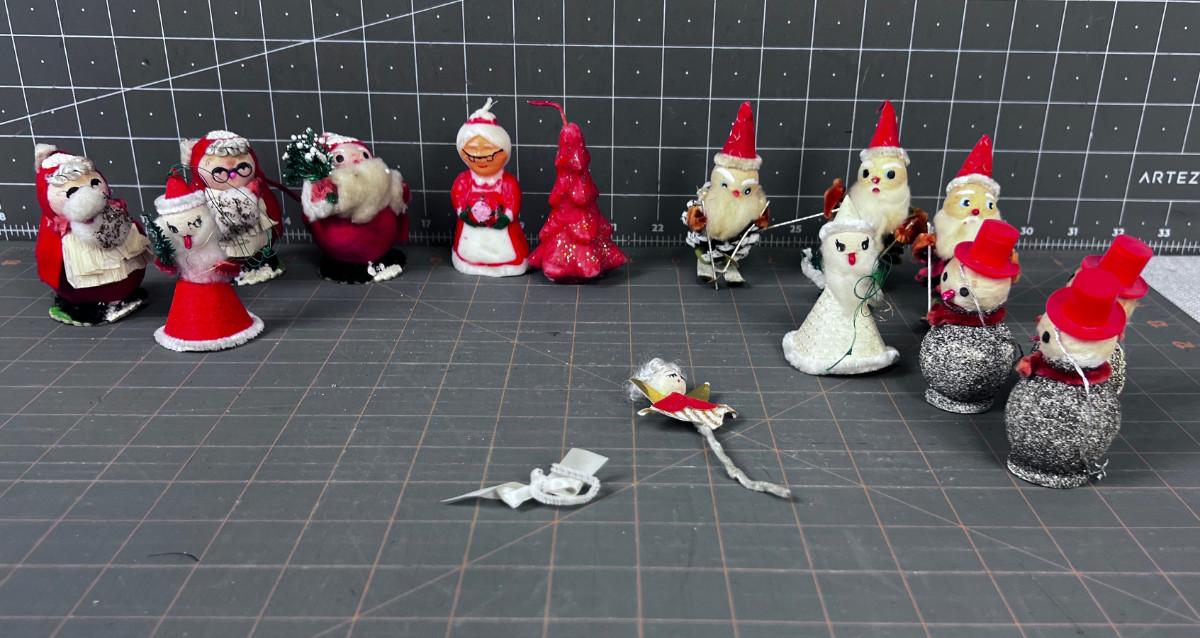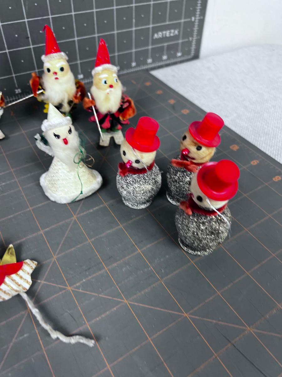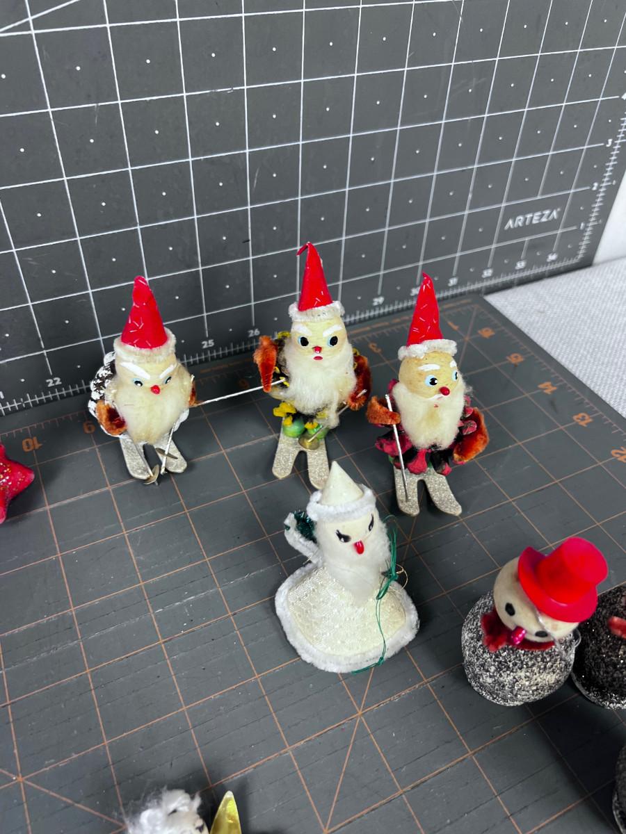 1950's & 60's Christmas Décor: Santa, Candles, Pinecone, Glitter Snowman.