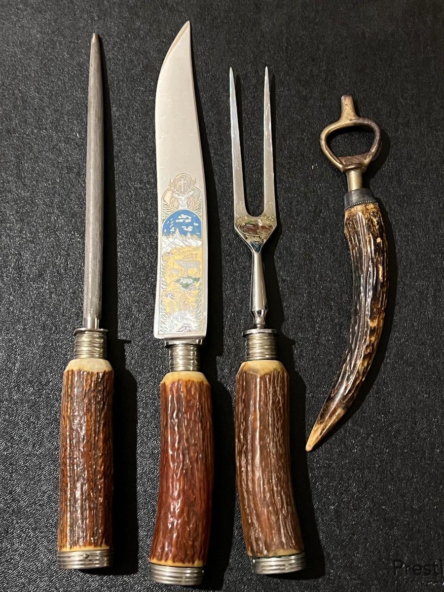 1950s Anton Wingen Jr. Carving Set- Real stag antler handles