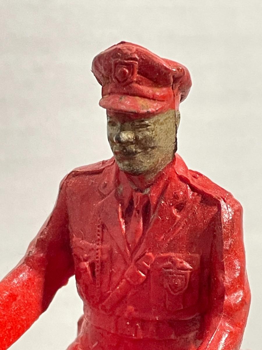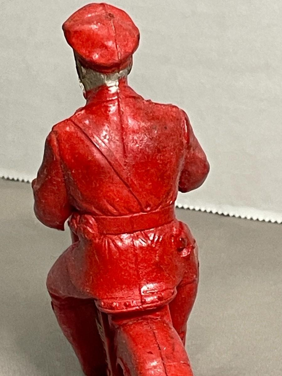 Watch out for this guy behind you if you're speeding! This police officer on a motorcycle is made of rubber and in overall good condition. He is about 6 inches long and 4.5 inches tall.