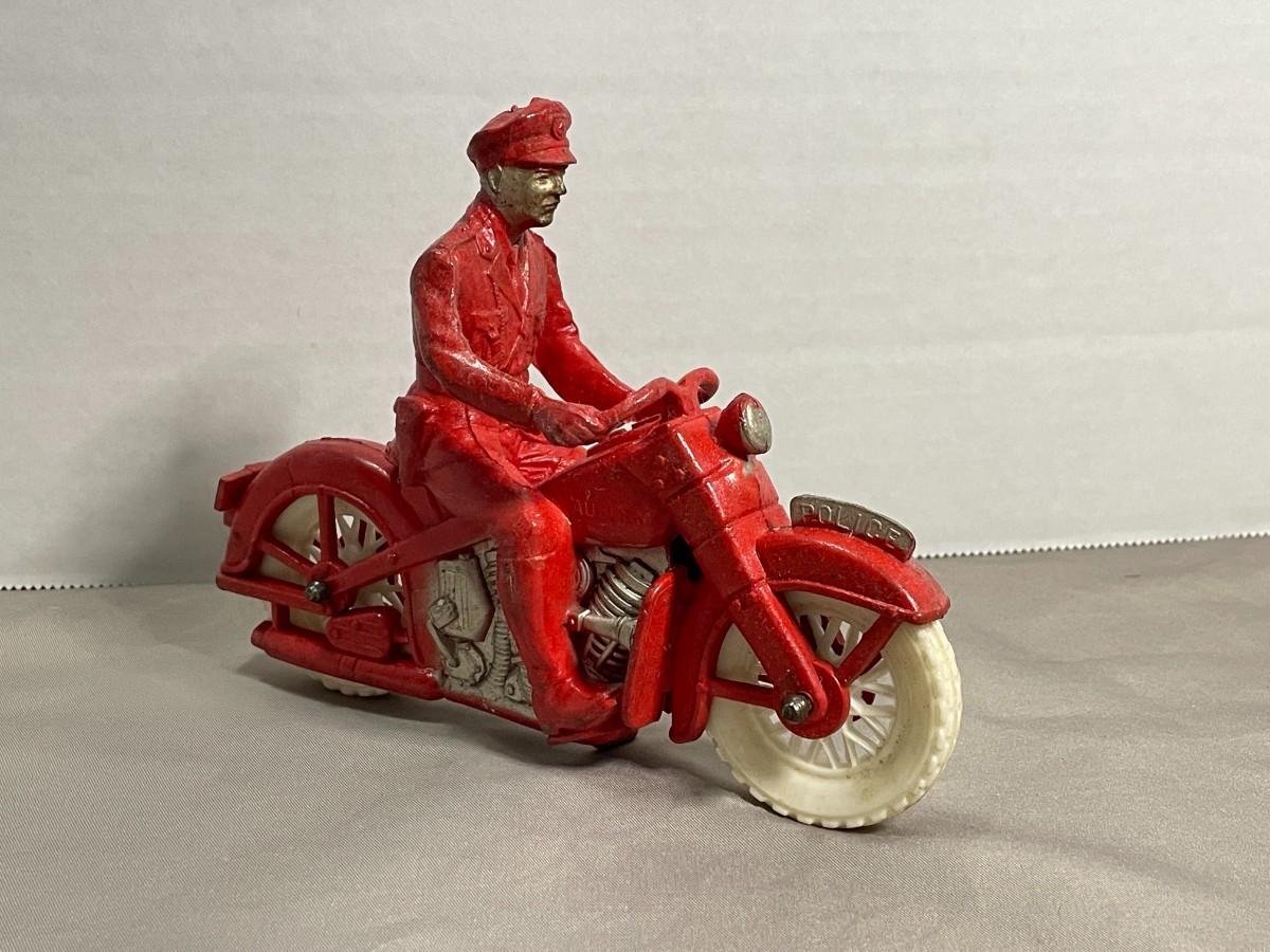 1950s Auburn Red Rubber Police Motorcycle