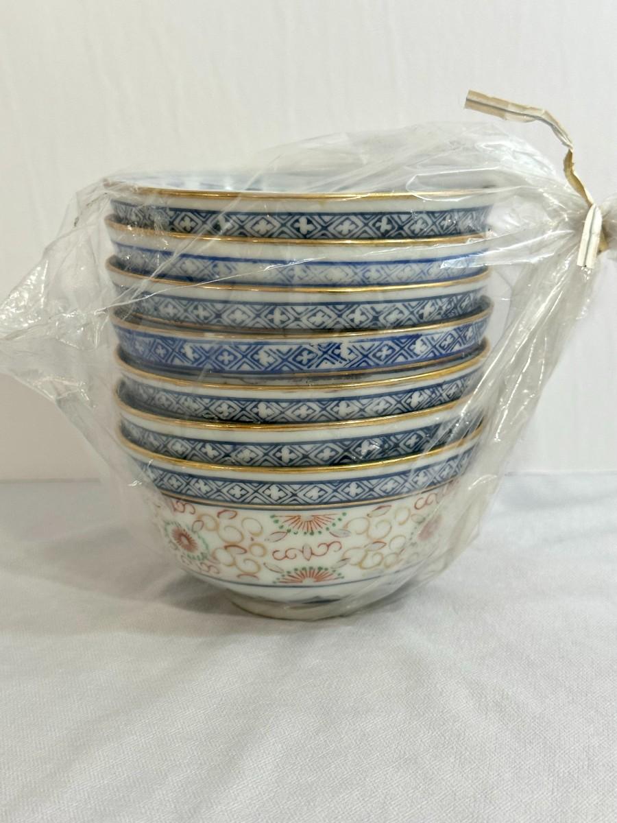 1950's Chinese Symbols Rice Bowls in Original Packaging