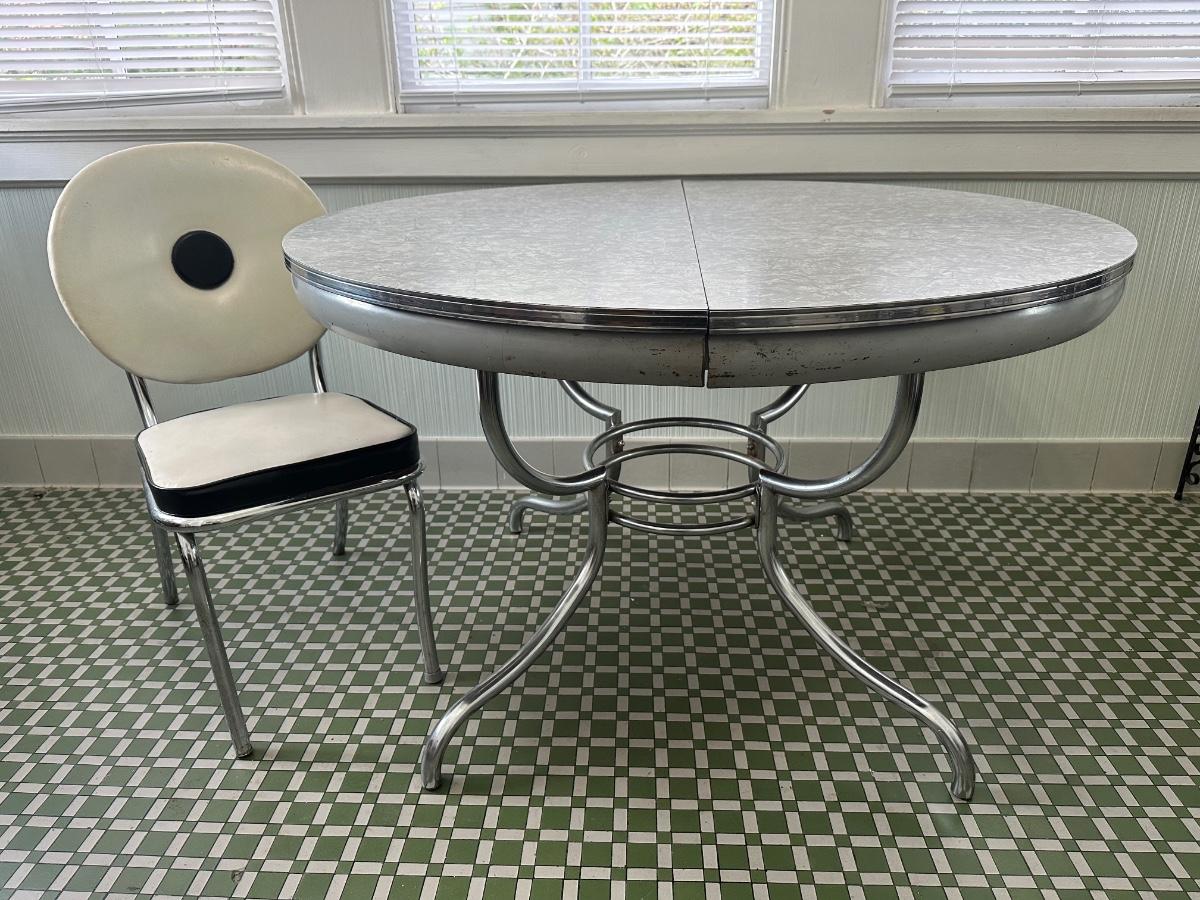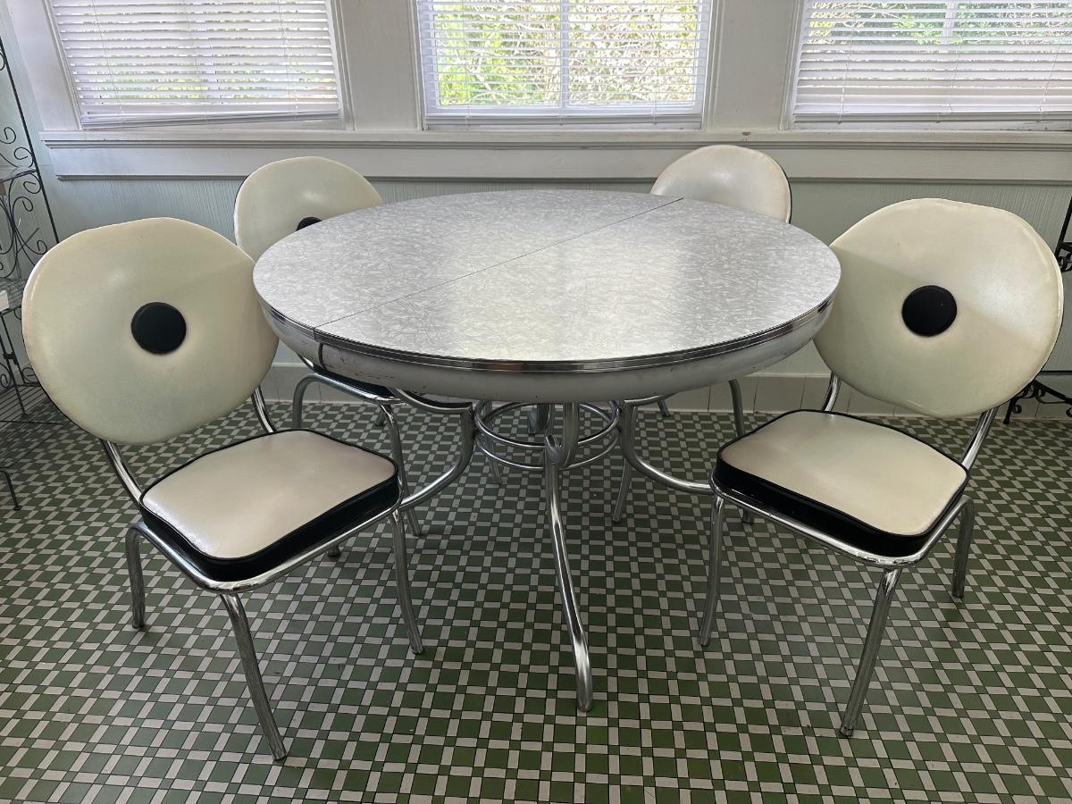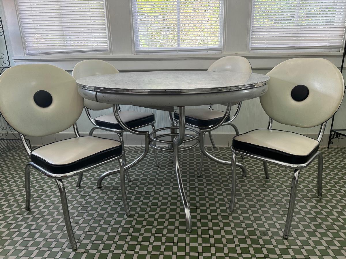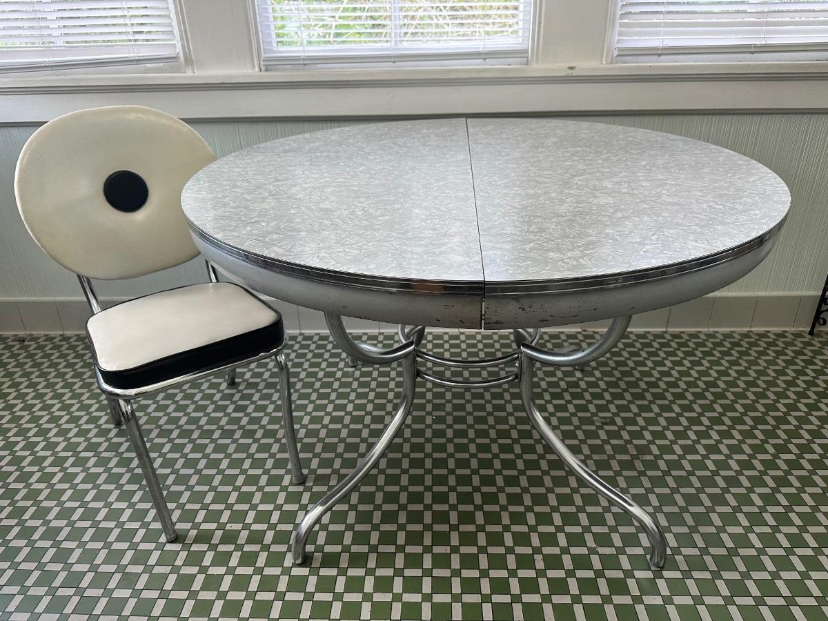 1950s Chrome Table with Leaf and Chairs