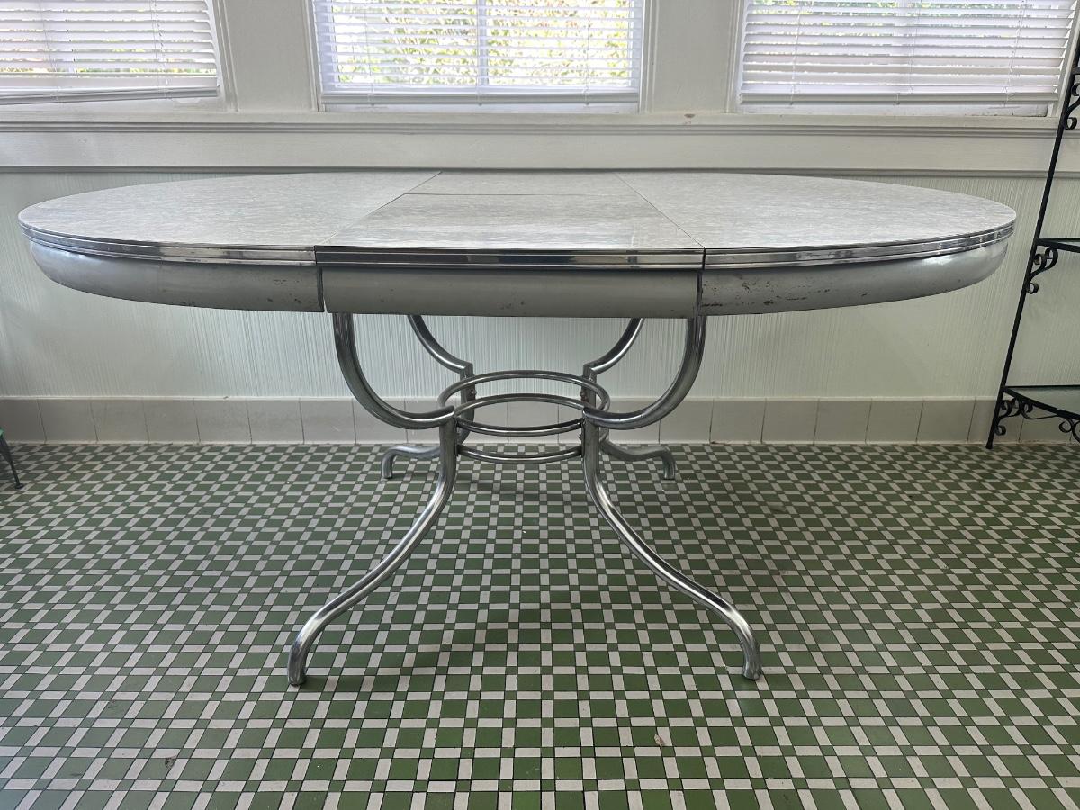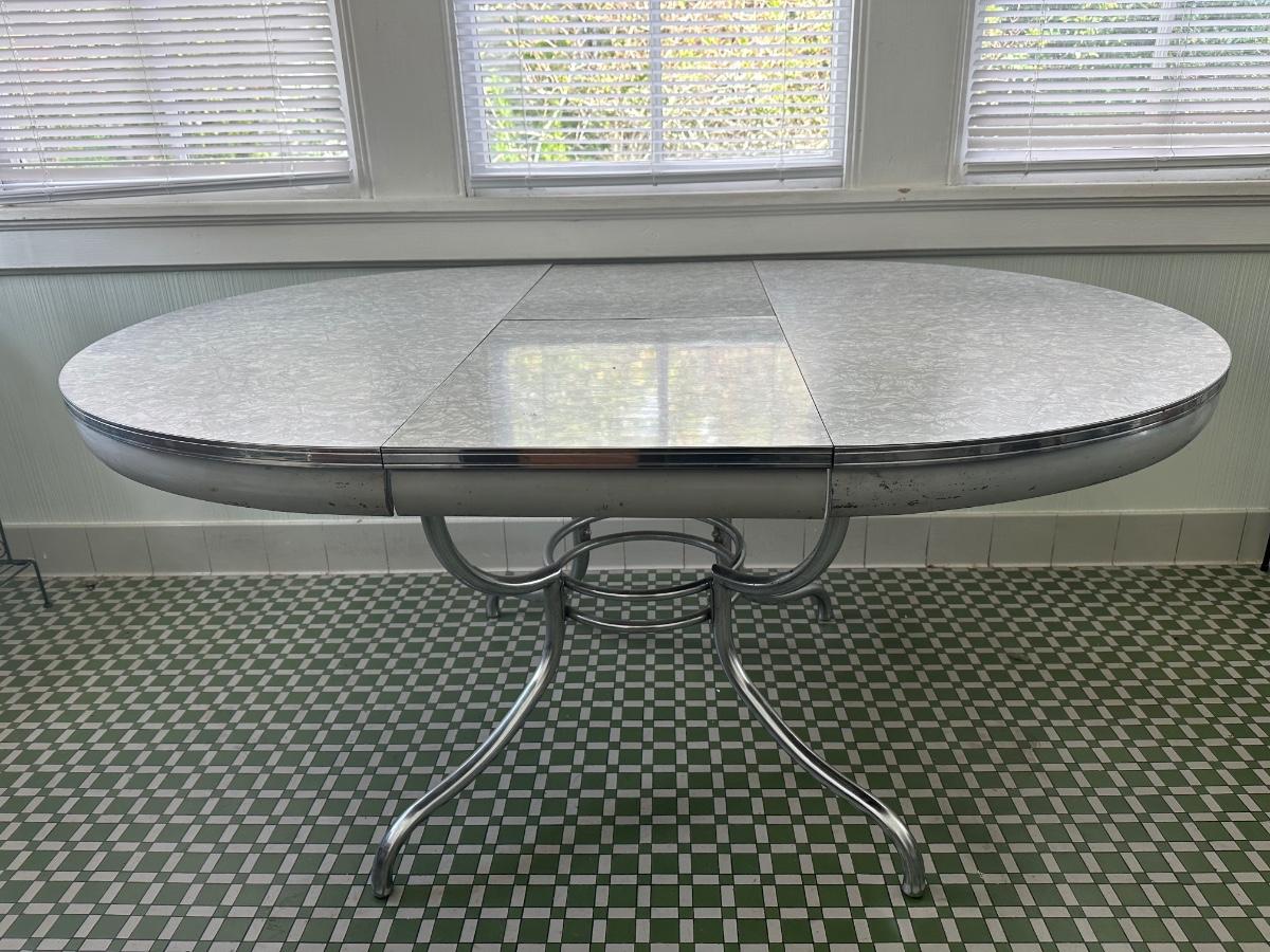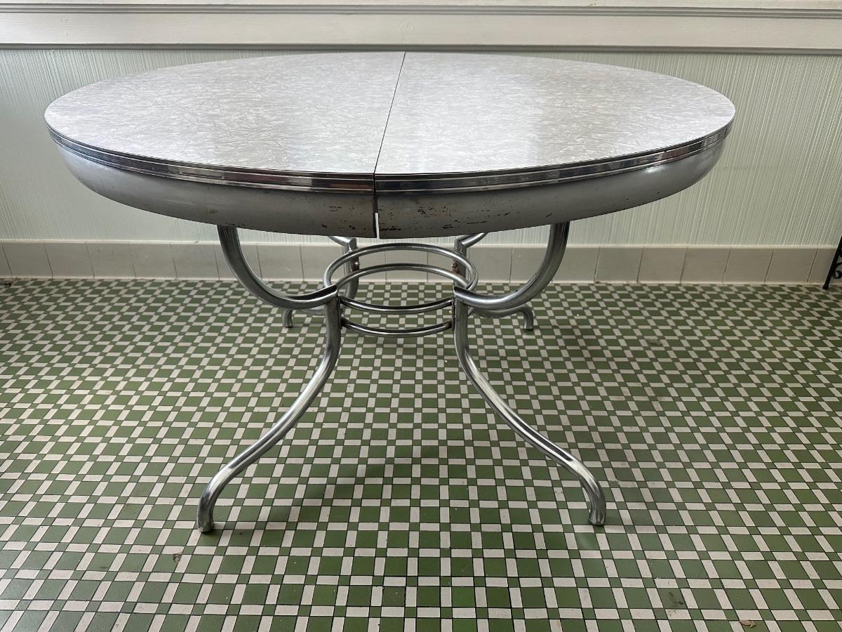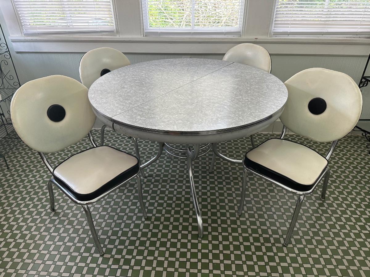 1950s Chrome Table with Leaf and Chairs